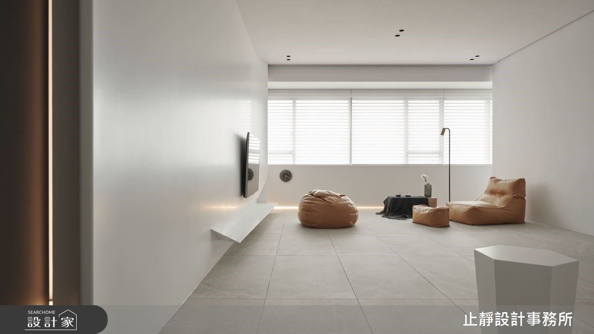 35坪的新成屋以less is more的極簡設計美學為軸心,去除繁複的裝飾以純粹的幾何形與點、線、面等元素建構,將平凡的新成屋轉化爲沈靜且耐人尋味的簡約風場域。