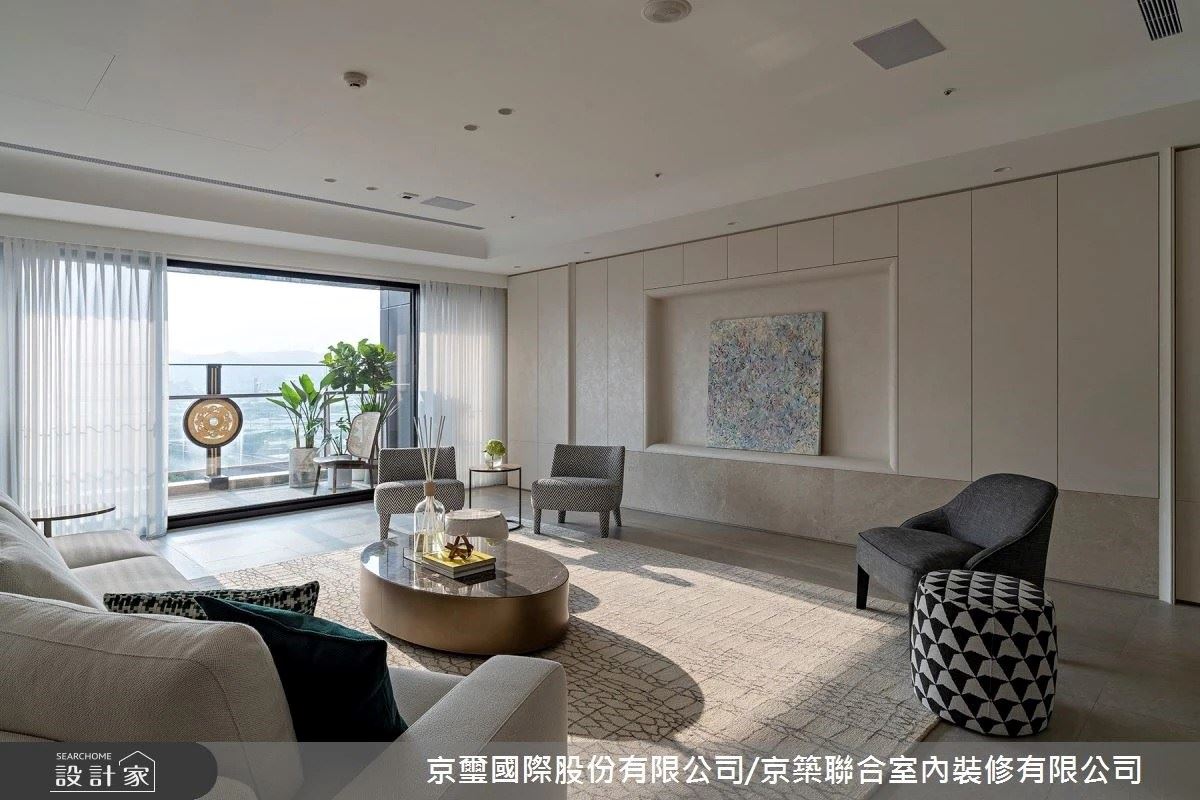 依據家具與畫作的軟裝陳設風格,以當代協奏曲的形式展演在豪宅空間中,公領域搭配經典的義大利原廠家具,隨著沙發、單椅舒適的造型,與畫作繽紛的色彩,豐富的姿態和順暢的流線令空間更加隨性安適。