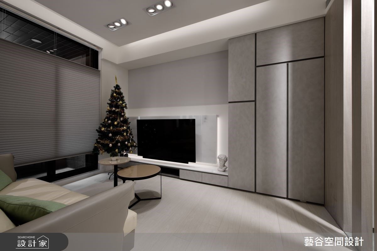 空間雖小,卻不能忽略玄關的重要性。此案的玄關設計,透過幾何圖案的淺灰六角磚,巧搭木格柵屏風,鋪陳獨立的落塵區域,加上收納充足的系統櫃體,讓每日進出更為從容,也不把灰塵病菌帶進室內。在公共空間的視覺規劃,選擇最簡約舒適的黑白灰,透過淺色基底與精簡的家具數量,讓視覺放大又不感到狹隘擁擠。