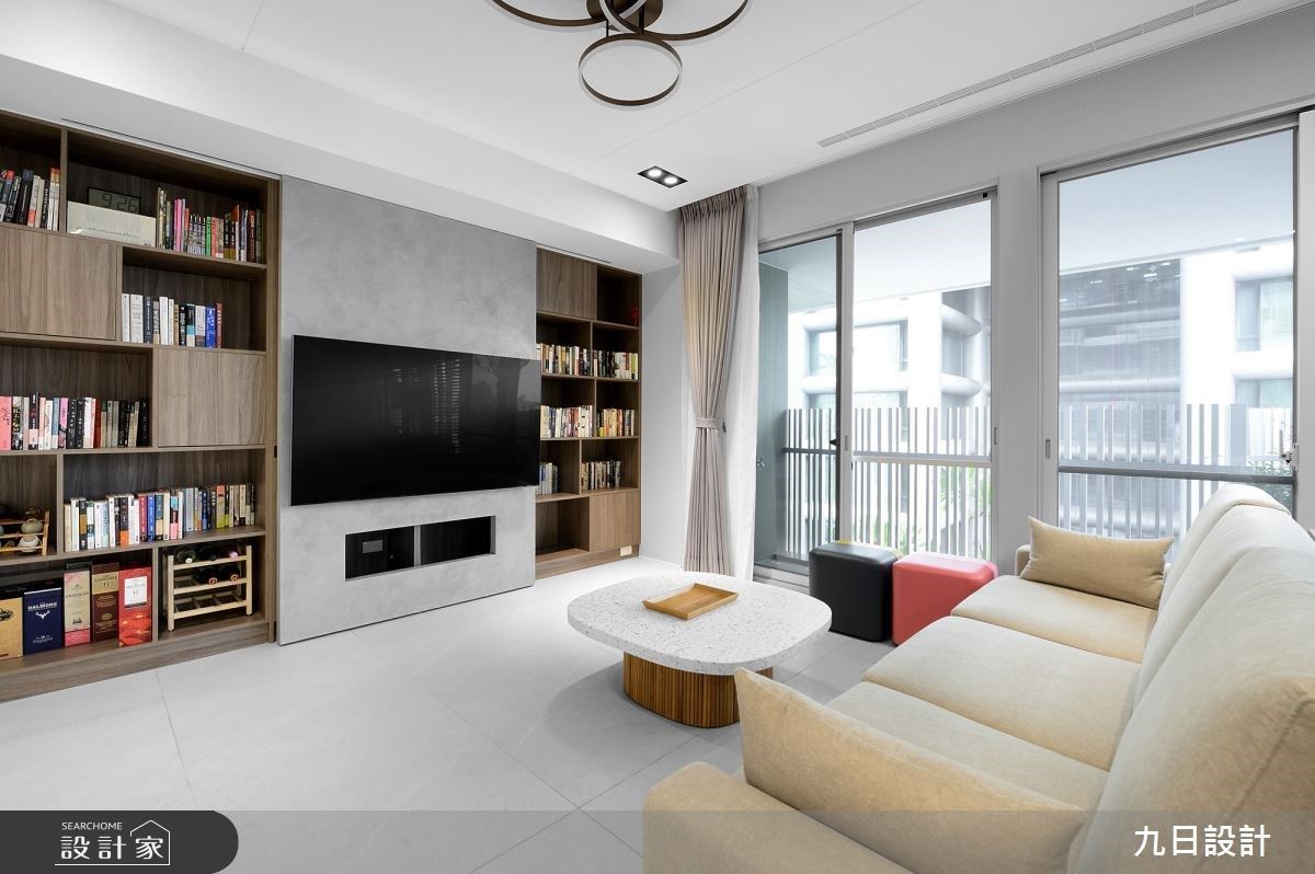 為了在都市住宅裡爭取更舒適的生活空間,28 坪新成屋將公領域收納都整合在電視主牆,讓公領域有餘裕在沙發背後規劃完整用餐區域,還有迷你中島可以準備輕食下午茶!