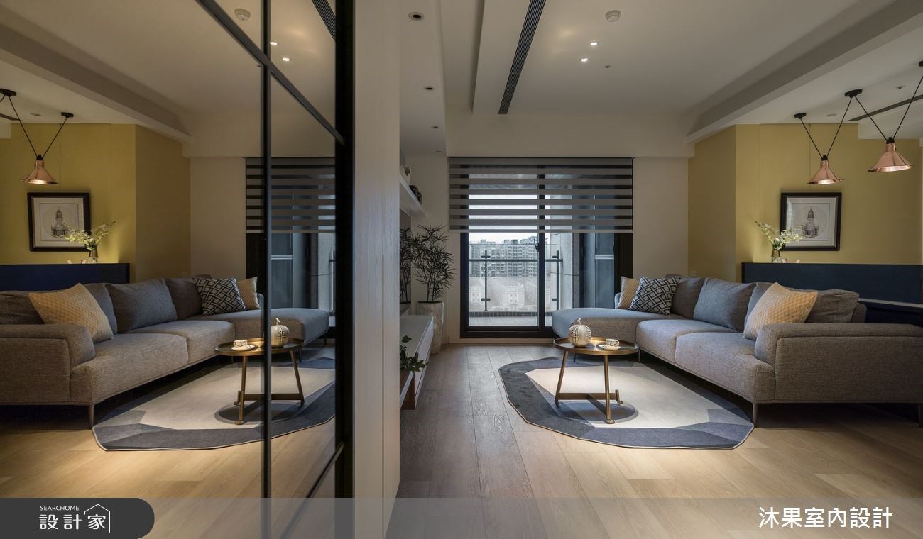 格局部分,為了打造寬敞舒適的公領域,設計團隊特地將原本的隔間拆除,完美把握採光面,讓充足日光能延伸入內,打造輕盈順暢的氣場。踏入玄關,運用聰明巧思,將鏡面作為系統櫃門片,不浪費空間,又能當作審視衣著,內部還能收納暫置的衣物、包包和安全帽,懸空造型除了讓櫃體不過於沈重,也能擺放拖鞋或臨時穿脫的鞋子。結合客、餐廳的公領域,選用鵝黃和灰藍進口磚妝點,搭配海藍家具軟件,勾勒明快有活力的氛圍。沙發後側配置長桌,化解背後無靠的風水疑慮,並將書桌、餐桌的機能融為一體,大幅提升整體坪效,再掛上成排的鐵件吊燈,鋪排令人驚豔的光影層次。