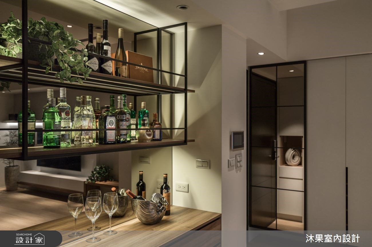 考量屋主有小酌一杯的習慣,於是將木櫃搭配懸吊鐵件,便成了輕巧俐落的小吧台,隨時都可以擁有美好的微醺時刻。
