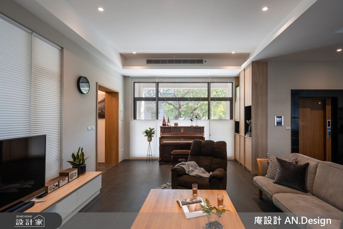 設計師善用房屋的向陽位置,在每一個空間領域都開闢大片向陽對外窗,邀請日光的拜訪,穿過百葉窗的調節成為家人日常沐浴其中的和煦微光。