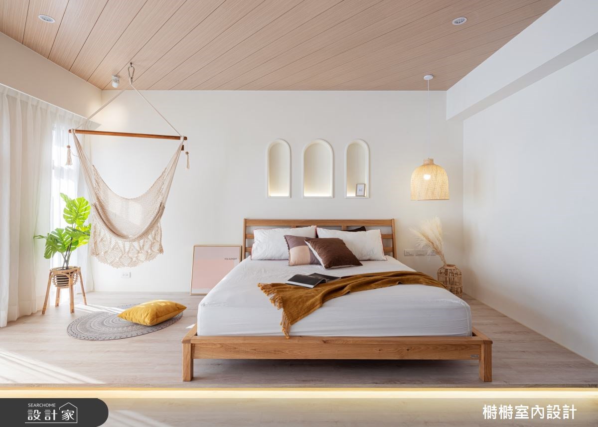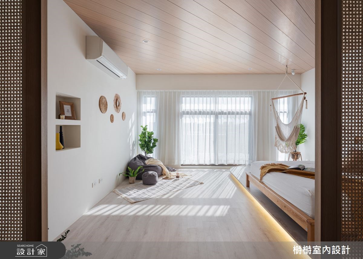 走進兒子房,沒有多餘的大尺度傢俱,在偌大的雙人床邊,透過東南亞的籐編元素及木質調,以及綠植和陽光的日常對話,打造慵懶寧靜的每一刻。