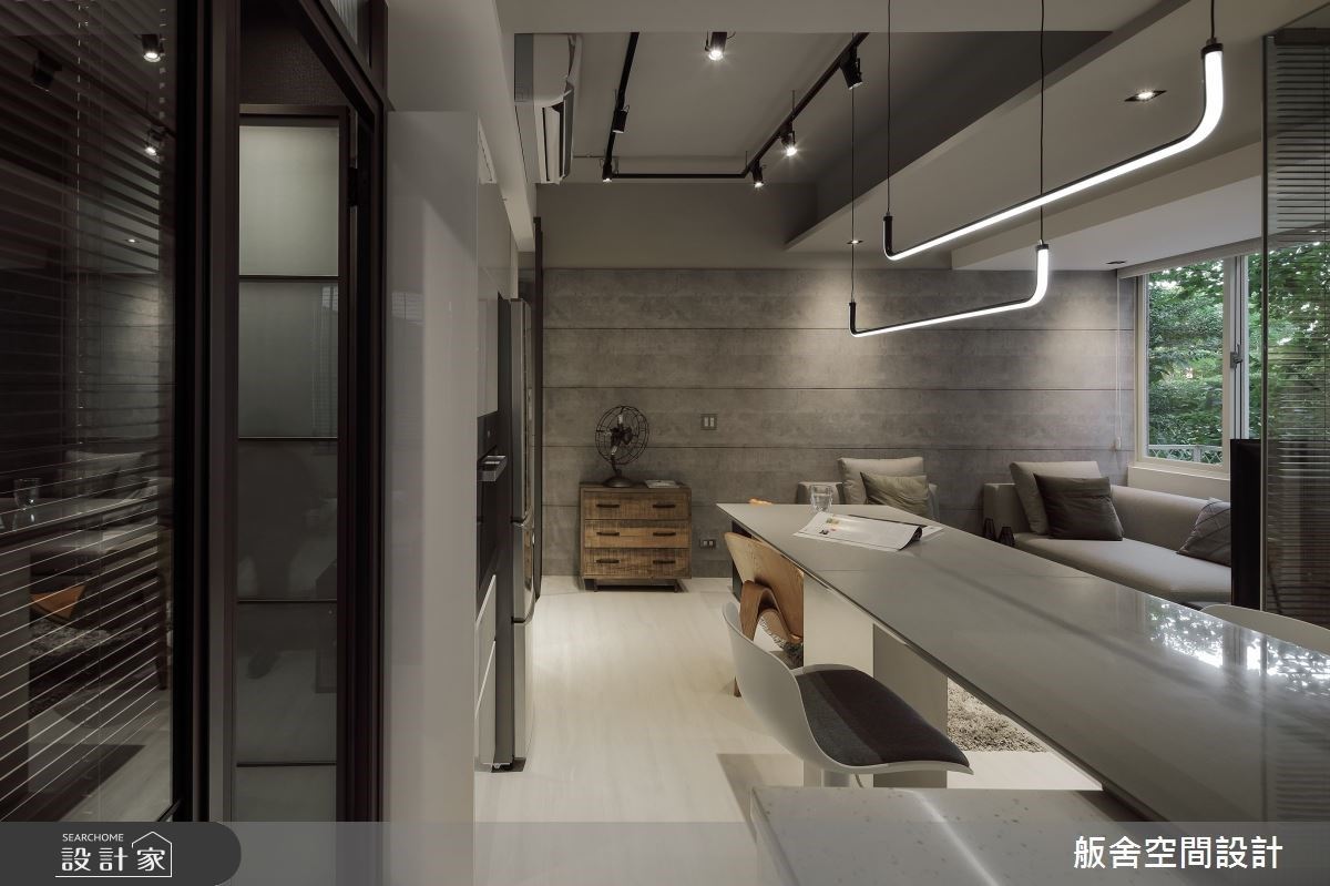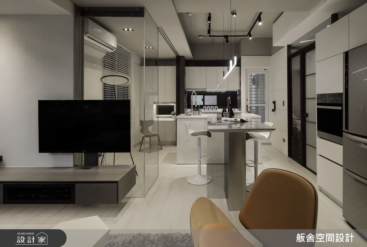 17坪老屋翻新的小宅裡,以黑白灰的低彩度做為空間背景,創造出個性化的Loft風格,並透過窗戶引入自然綠意,且以通透的玻璃隔間手法,巧妙界定場域,營造出開放、流動的居家環境。