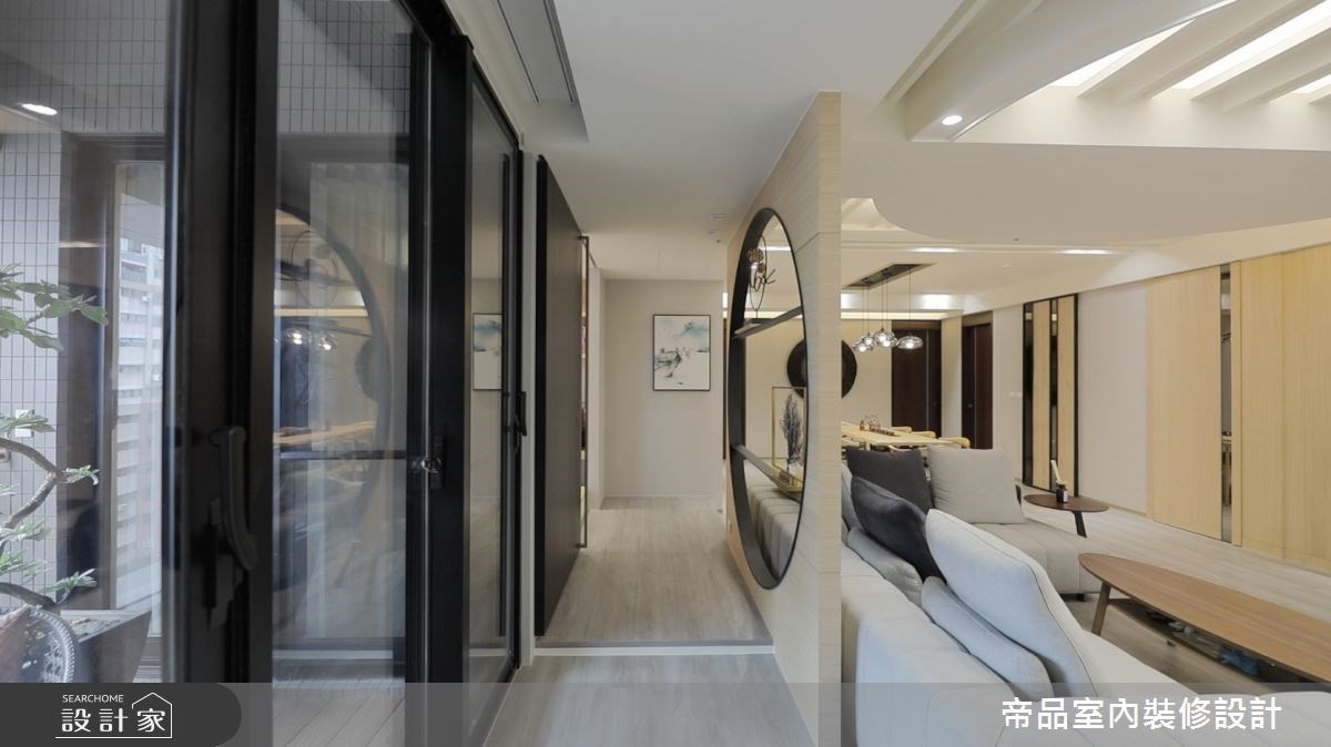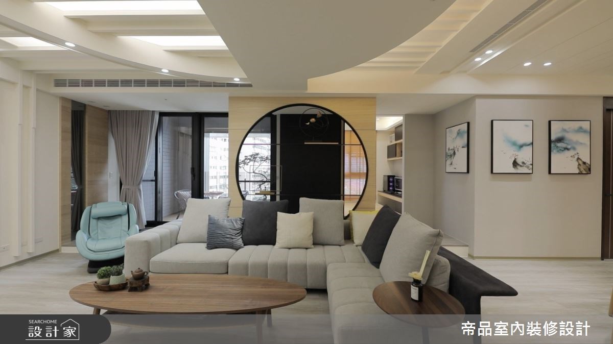 53坪單層宅邸,設計師援引屋主喜愛寧靜悠遠的日式感,融合新東方風的大器和雅致,除了拆除實牆引光入室,更透過圓弧意象與和室門片的推拉,形塑虛實交錯的美感,完美詮釋東方美學的優雅姿態。