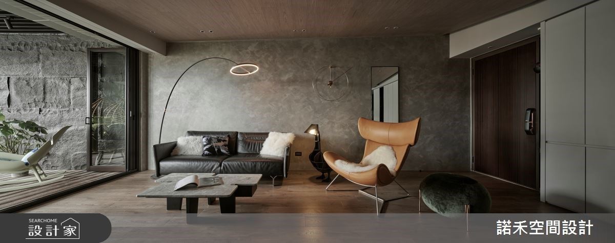 50坪的空間裡,利用美式風與現代風為創作靈感,透過木皮、藝術漆、鐵件與石材的安排,營造出沉靜且溫潤氣息;透過半高飄浮感電視牆、大型中島吧檯的設計、愜意的度假風大陽台,特調出開闊又凝聚一家情感的人文宅邸。