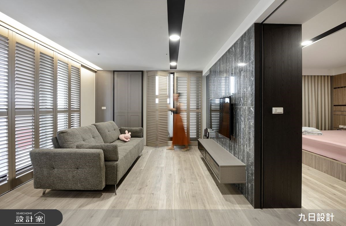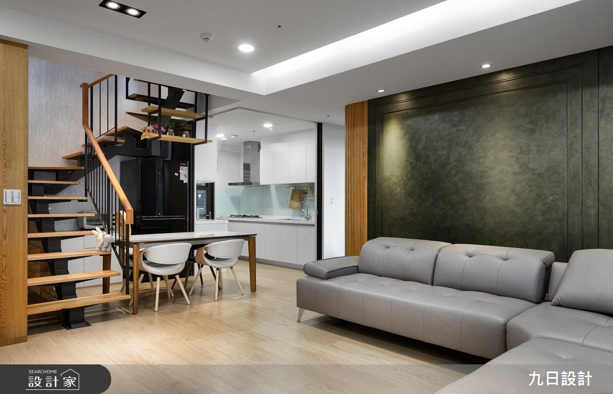 45 坪的混搭風樓中樓,承載著三代同堂的多元需求,屋主希望空間看起來既開闊,又擁有豐富的收納機能,加上長輩有風水上的考量,因此設計師重整原先不符合需求的格局、樓梯和天花板,迎接明亮寬敞的三代空間。