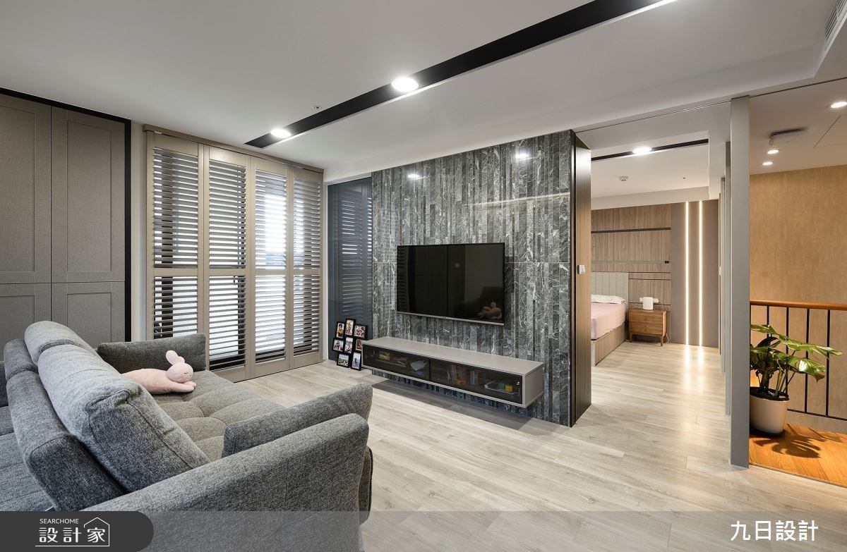 設計師在公領域利用大理石、鐵件、藝術塗料等異材質混搭,加上低矮的家具陳設、玻璃拉門的運用,提升了樓中樓的寬敞感,又能增加視覺的豐富性,讓三代同堂舒服地共享天倫之樂。