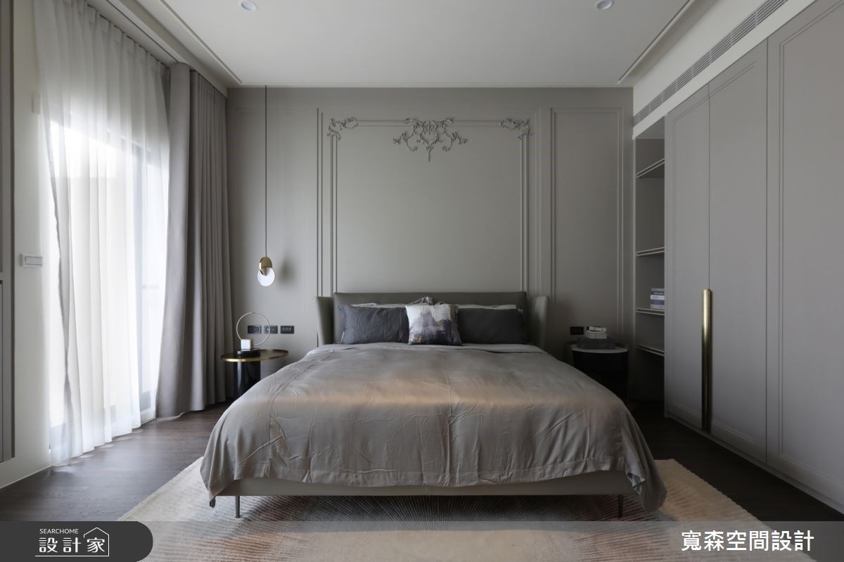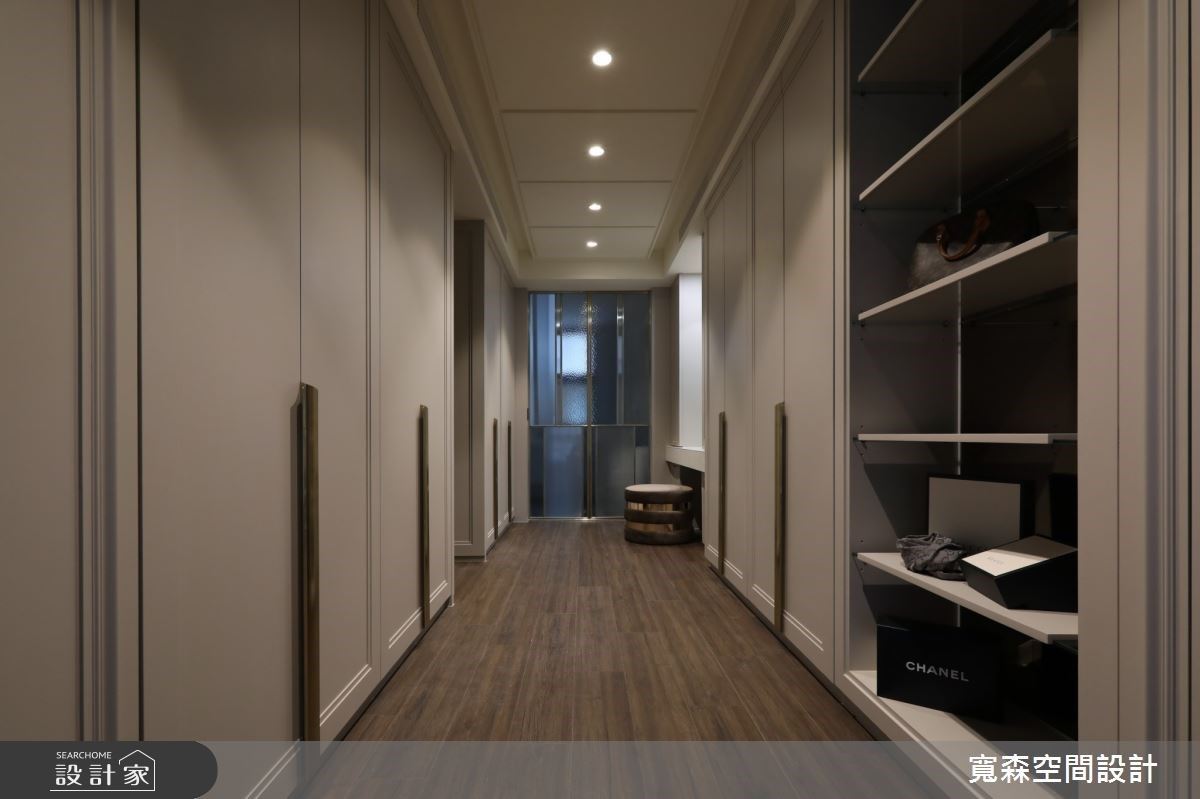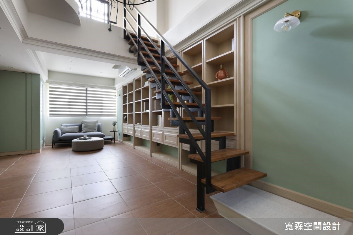 從一樓玄關上到二樓空間,開放式的客餐廚乘載著一家人的歡聲笑語,客廳空間以淺米色為基底鋪陳公領域,大面採光入室讓明亮北歐感更顯著,上方天花板加入金色元素與層次變化,將場域分野藏匿於無形中,沙發背牆以弧面造型搭襯燈帶設置,烘托素雅優美的空間氛圍,電視牆以圓弧收邊延續至餐桌領域,緊鄰斑駁感的藝術漆牆面,兩種元素鏈結於同一平面,挹注文藝爛漫的空間魅力,餐桌上方的穹頂天花板拉高深度,傾注的古典氣息瞬間讓此處成為目光焦點,現代感金色燈飾更讓大器俐落感漫溢於公領域;三樓空間為主臥室,設計師運用質感灰色系,打造有如入住飯店般的精緻感受,床頭背牆以雕花線板,讓空間縈繞於新古典風的優雅氣息,電視牆面以耐麗石搭佐燈帶設計,讓建材的光澤感有最好的詮釋表現,廊道化身大面收納櫃,不僅滿足女屋主的收納需求且間接取代傳統更衣間,讓敞開的主臥空間獲得更寬廣的視覺享受;四樓為兩間小孩房,大女兒房以清爽藍調打造簡約北歐感,隔柵設計讓線條元素恣意流通於寢居空間,另一孩童房因空間較小,以延伸空間為目的規劃出閣樓,上層作為閱讀收納區域,下層作為睡眠區,不僅兼顧成長需求,也適時地保留童趣活潑感;五樓空間以輕淺綠搭配木質紋理,打造公共書房,讓一家人置身於書香世界也擁有休憩放鬆的感受,更激盪出簡約與古典的嶄新風貌。