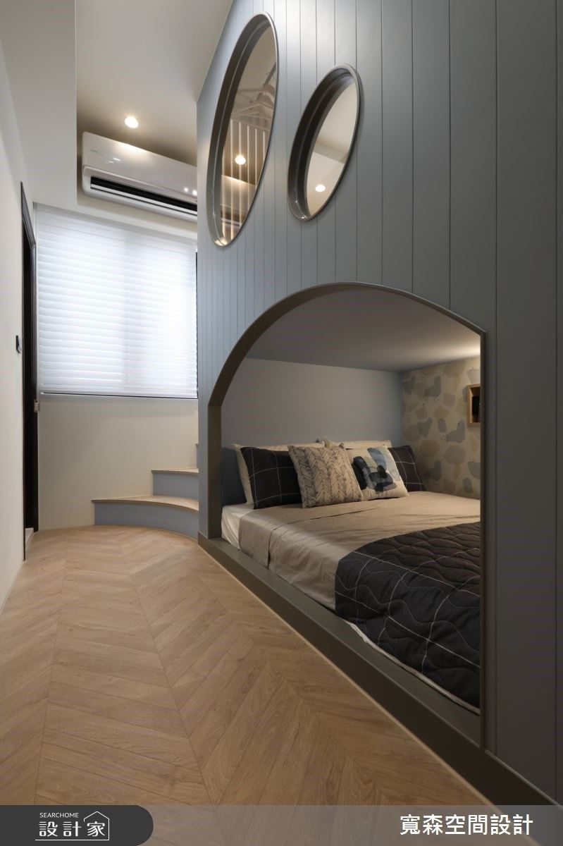 閣樓小孩房以圓形透明玻璃作為空間造型,不僅在視覺上更通透,也打造有如太空艙般的童趣面貌。