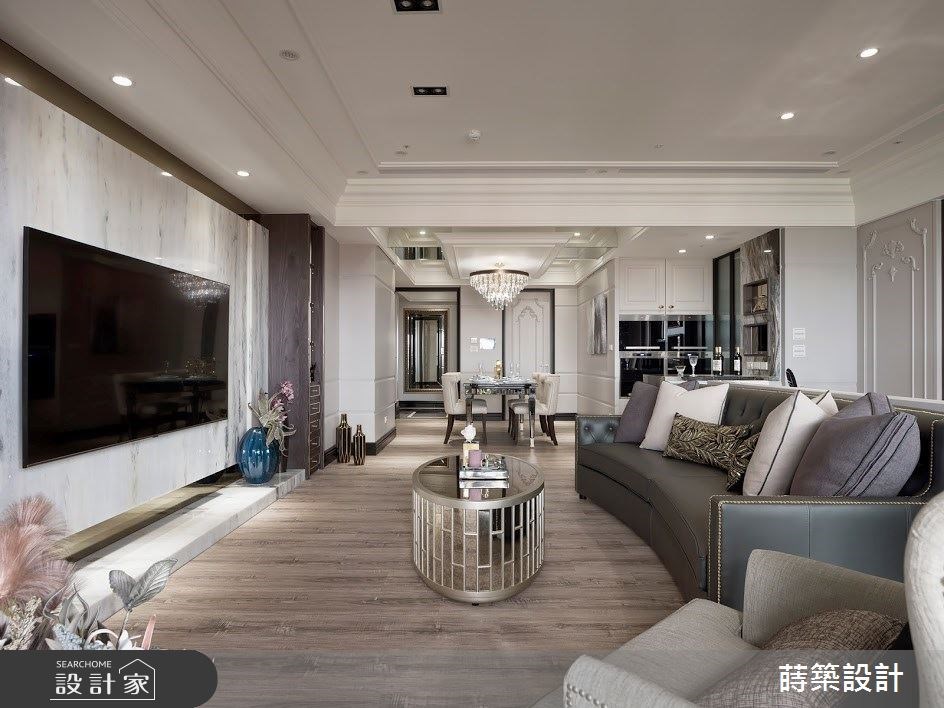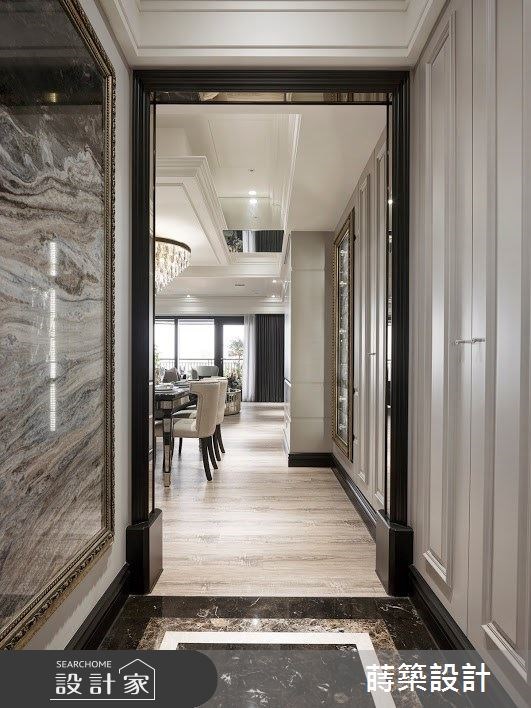 常常國內外兩地跑的一家三口,希望將女主人想要的新古典風格,注入這間 37 坪的三房兩廳空間中,設計師在考量屋主的各種需求後,決定捨棄其中一房,並調整了室內格局與隔間,讓原本的小空間相互串聯,創造出宛若百坪豪宅的高尚氣勢。