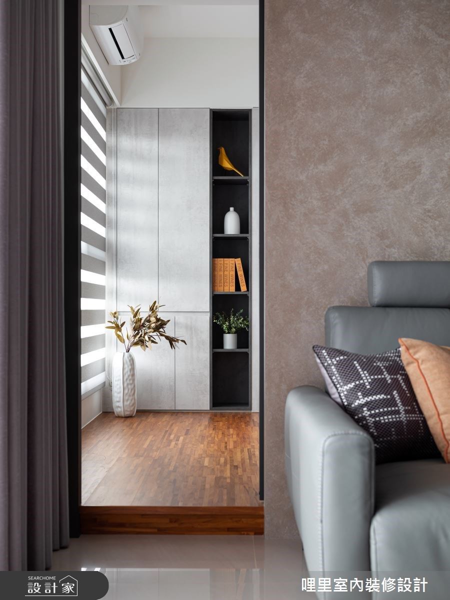 入門玄關處以茶鏡打造寬敞的視覺效果,同時作為玄關全身鏡讓機能更加齊備;側邊大面電視牆選擇銀河灰大理石為主要建材,茶鏡為鋪陳,為空間挹注大器沉穩風貌,並透過細膩的銜接手法連貫側邊深灰色收納櫃,讓深淺灰色碰撞出最和諧的樣貌,不僅活絡客廳區域內的平面元素,更豐富公領域的視覺層次;沉穩底蘊的展示櫃不僅結合信仰需求,內嵌鋁式條讓線性元素勾勒精緻表情;為了改善餐廳區域的採光不足,設計師拆除書房、孝親房更衣室隔間,引導採光入室,享用佳餚時刻也能有光線伴隨左右;新空間將衣櫃、書櫃、隔間合一,規劃為書房與和室,整合雙面的收納空間讓動線更流暢,半開放式空間也讓回字型動線成為一家人生活的全新提案。