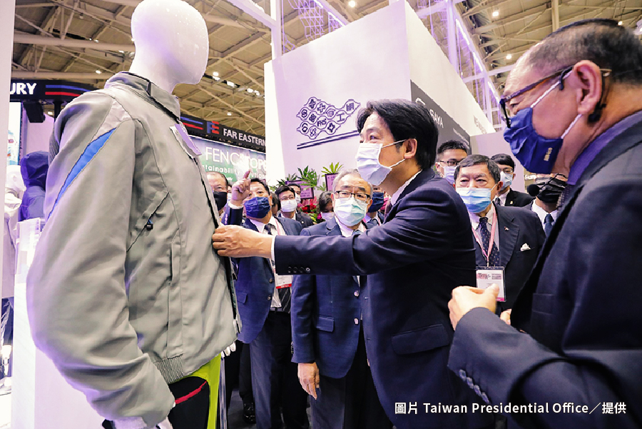 (中央社記者蔡芃敏台北13日電)副總統賴清德今天表示,台北紡織展是國際今年首場實體紡織展,台灣防疫有成,紡織業功不可沒。在打造台灣成為「亞洲高階製造及研發中心」理念下,政府將繼續與紡織界共同合作。