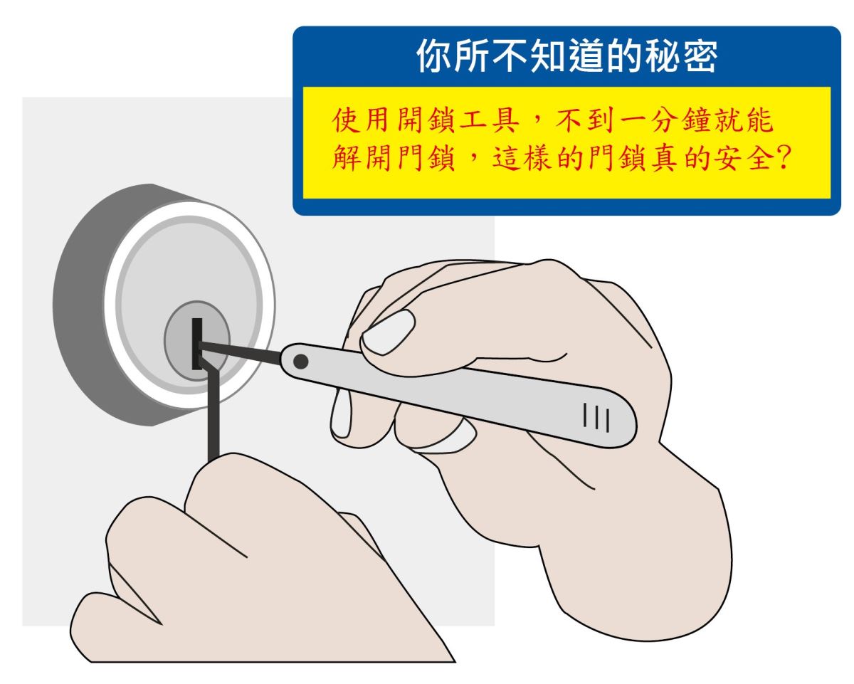 大門深鎖一向是我們確保住家安全最直接的方式,可是你確定你的鎖安全嗎?很多人有忘記帶鑰匙、鑰匙不見了等經驗,這時候找鎖匠來不到一分鐘的時間就可以將門打開,門鎖其實就這樣被輕鬆的破解了,這樣的門鎖你放心將家人與財產的安全交給它嗎?