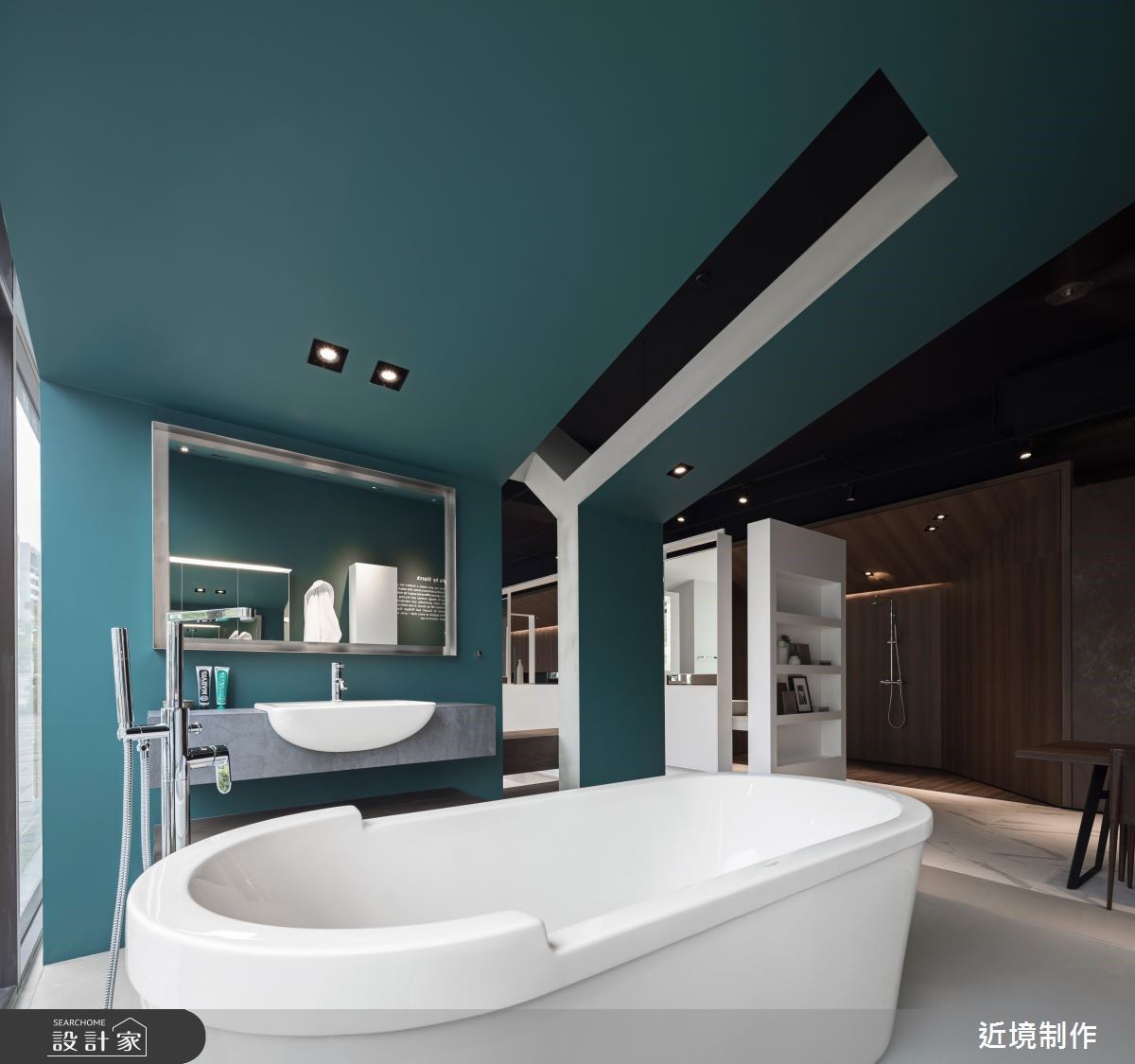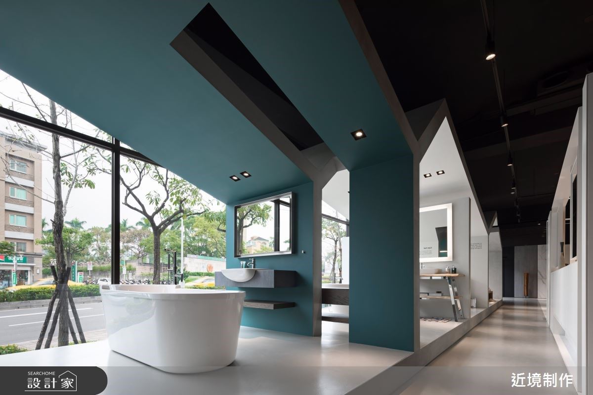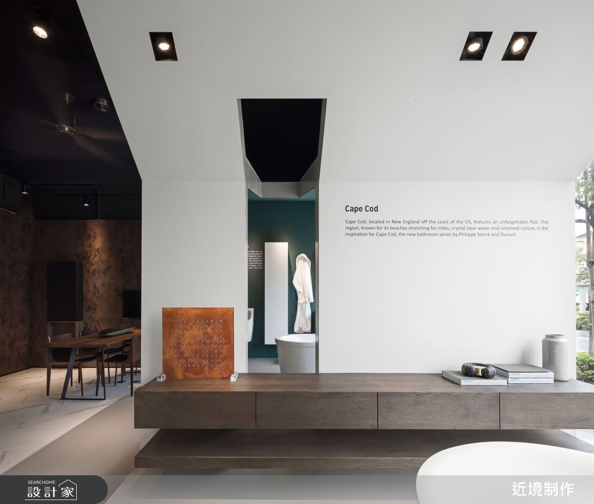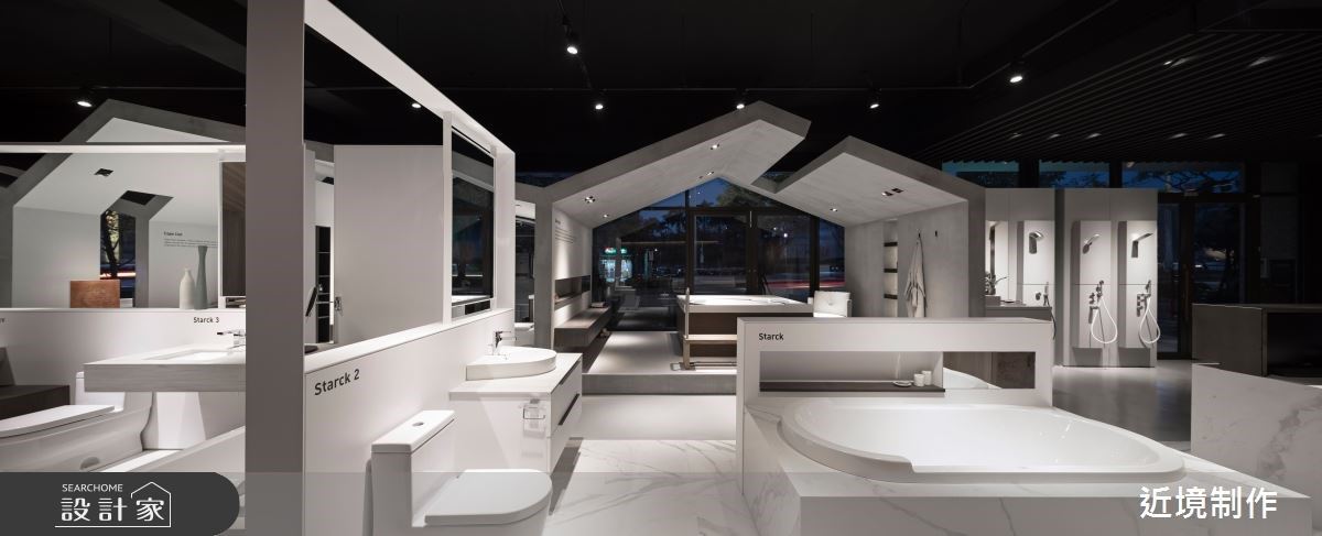 以「建築中的建築」做為空間規劃的概念,規劃一個讓客人能夠自然遊走的環形空間,好讓所有系列產品合適其中,利用樓層挑高的優勢,設計出不同斜版做成的天花造型,並依不同衛浴產品高度比例來規劃,實際的尺寸符合生活使用、劃分區域、不同材料的運用,將空間劃分為三個主要區域,並以白色材質、深色木皮及鏽鈑,打造自然及人文碰撞出的不同層次。