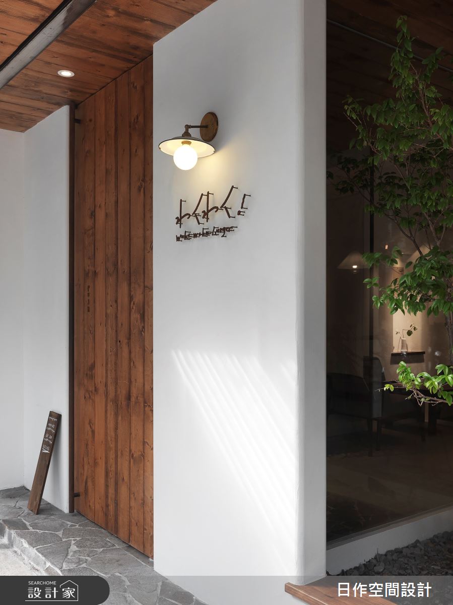 細節:入口立面利用白色基調與木頭呈現溫暖氛圍,鏽鐵招牌勾勒日文、英文店名,自然樸實地存在著,搭配鐵件與木頭三角立招,輔助點出小店販售的品項。