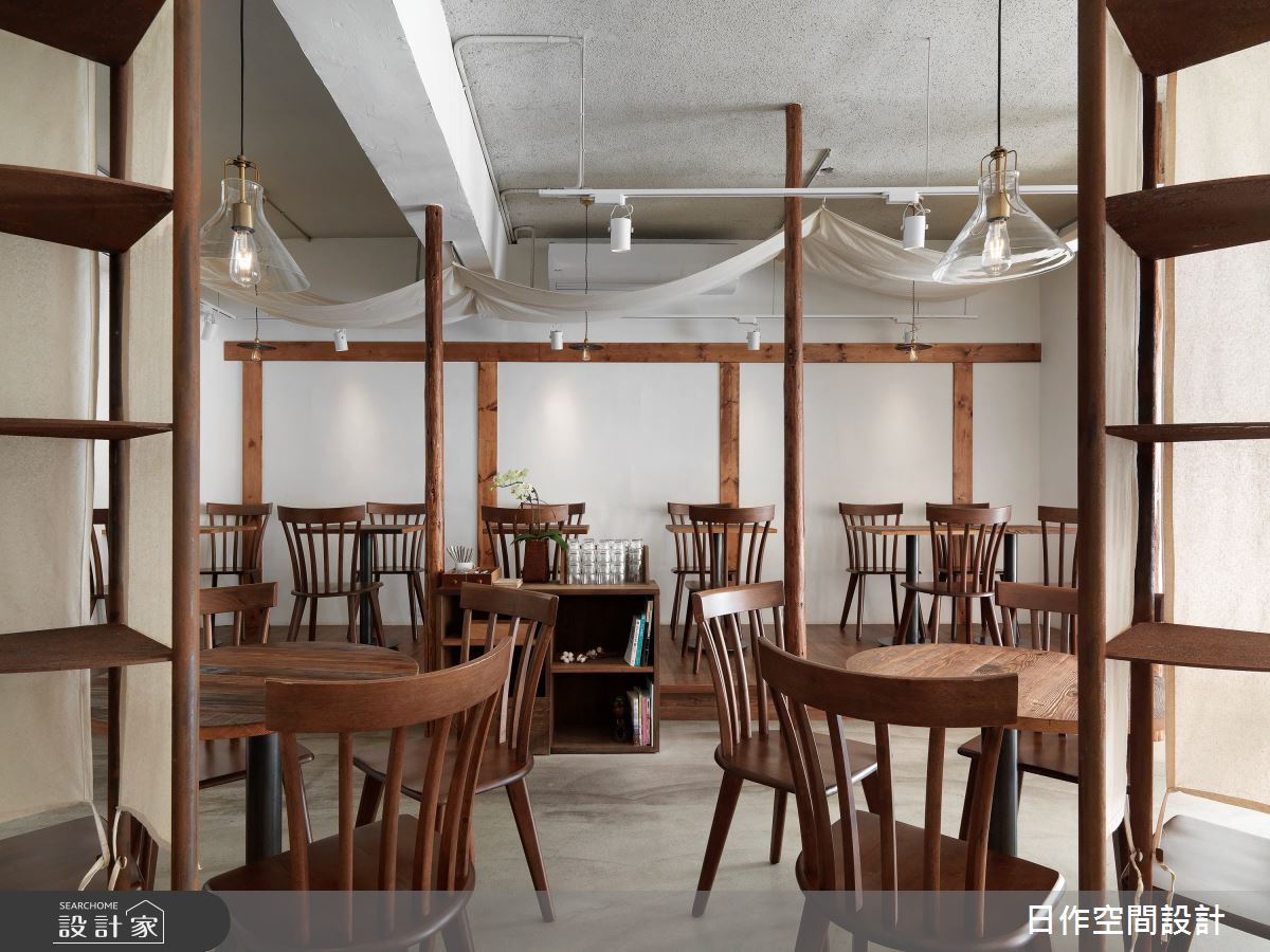 細節:天然的麻質布幔為空間注入自然、浪漫的日式時代氛圍,木頭樑柱線條語彙則同樣點出風格調性。