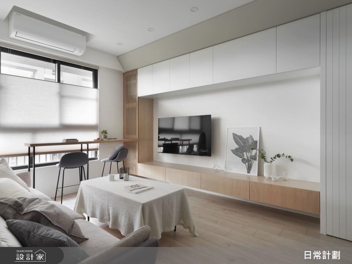 走進20坪小宅空間,視線穿過高樓大廈後,隱隱透出療癒的湛藍海景,陪伴2大2小度過美好日常。全室注入一塵不染的純白簡約風,搭配低彩度的淺木質與暖灰,描繪寧靜無壓的居家氛圍,再加上臨窗的吧台設計,完美詮釋生活的舒適及愜意。