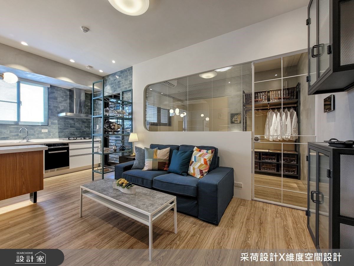 為了使室內採光能夠妥善地運用,公共區以開放式格局為主軸,使光線可以在空間中自由流動。廚房在一字型廚具配置之外,也在外部設置中島吧檯區,擴增備餐、收納及用餐的使用,料理時更能得心應手。除此之外,設計師在坪數的限制下,將隔間牆稍作調整,主臥室牆面及門面皆採用玻璃材質,大幅提升整體空間的開闊通透感,內部則以百葉簾滿足寢臥隱私,打造私密休憩時光。