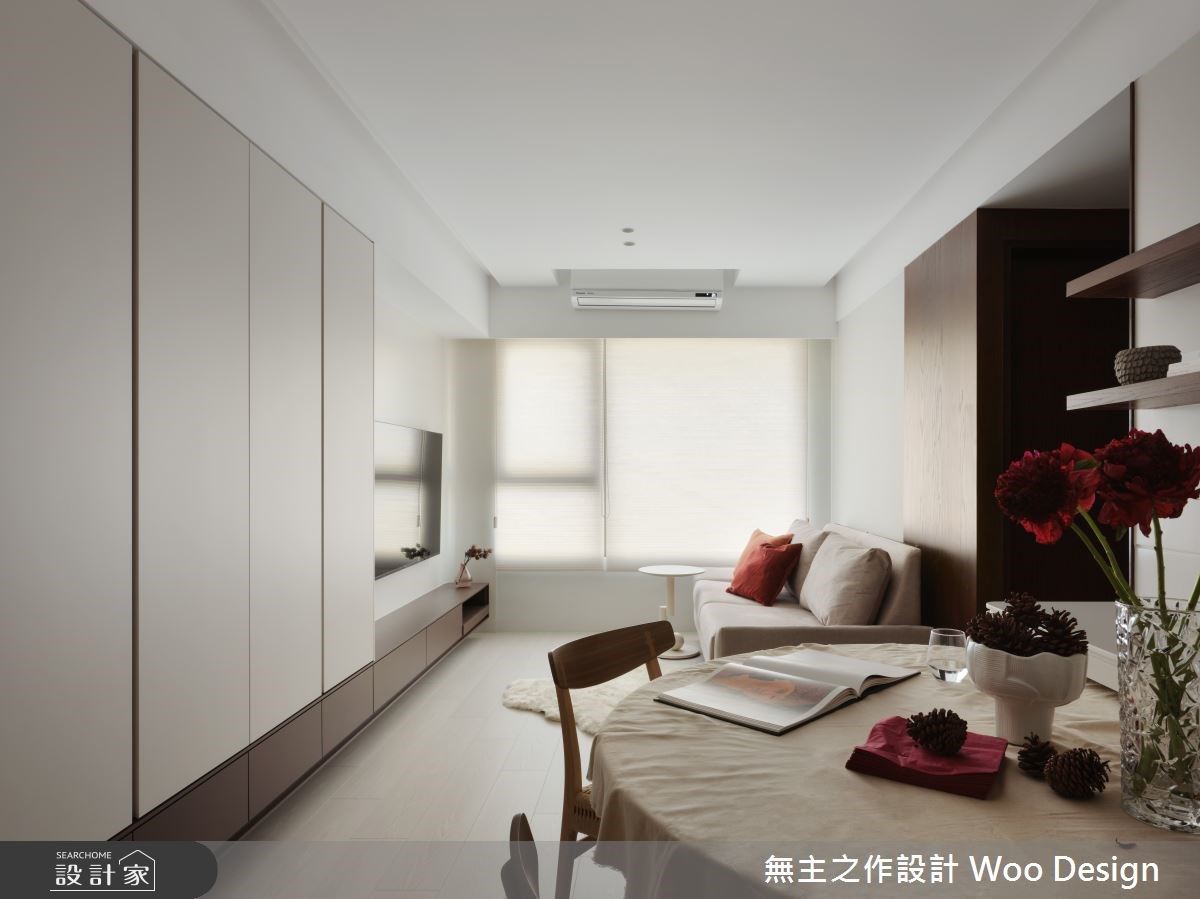 坐落於台中市西屯區的18坪新成屋,居住成員為兩大兩小,而家中長輩則是偶爾來訪,因此希望在維持原建商所配的兩房兩廳格局的基礎上,增添使用彈性,同時又能保持寬敞的空間感。無主之作空間設計先透過色彩,交織明亮清新的風格,再搭配上隨著建築基地延展的櫃體,兼顧美感與實用性,在不動格局的狀況下,打造出實用又零死角的奶油系北歐宅。
