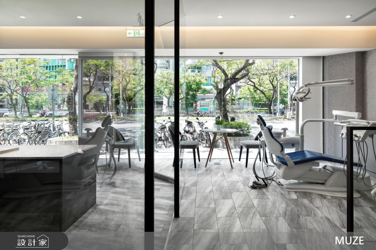 位於台北市天母,以俐落的現代風為主軸的牙醫診所,設計師以質感的灰階色調鋪敘色彩基底,襯托出窗外的清新陽光和綠意,即便在診療時,也能享受戶外的街道風景,更擴大了整體的空間感後,紓緩看牙醫時的緊張感,感受悠閒自在的環境氛圍。