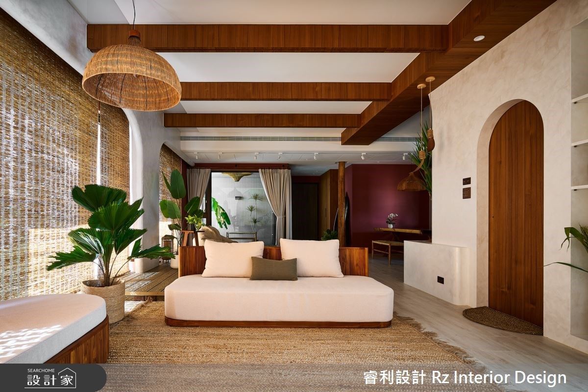 32坪的新成屋,以峇里島的自然風情為靈感主軸,結合現代設計語彙,打造成一個具備多元拍攝功能與室內設計體驗的複合型商業空間。設計團隊睿利設計與放空計畫,善用原始屋況條件,以「家」為概念,鋪陳出令人一踏入就感受到溫暖與放鬆的氛圍。空間中大量使用原木家具、特殊漆牆面所營造的粗獷質感、藤編元素與綠植裝置,並以赭紅色作為視覺亮點,完美詮釋峇里島的熱帶慵懶與自然恬靜。