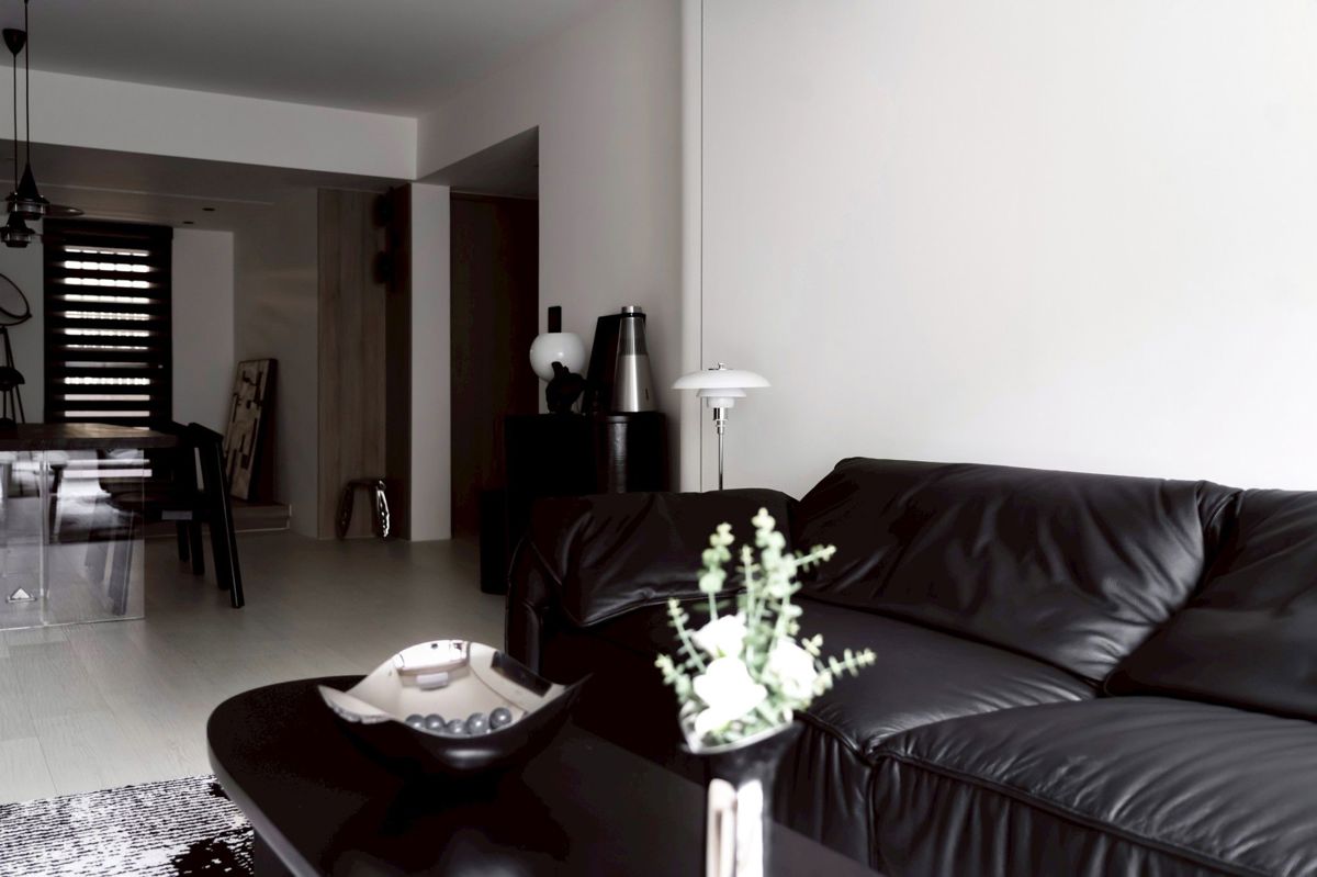 空間以留白牆面作為視覺基底,營造乾淨俐落的氛圍,黑色則集中在家具配置上,如沙發、餐桌與櫃體,展現個性同時保有舒適感。設計師巧妙運用材質變化,讓黑白色彩不顯單調。