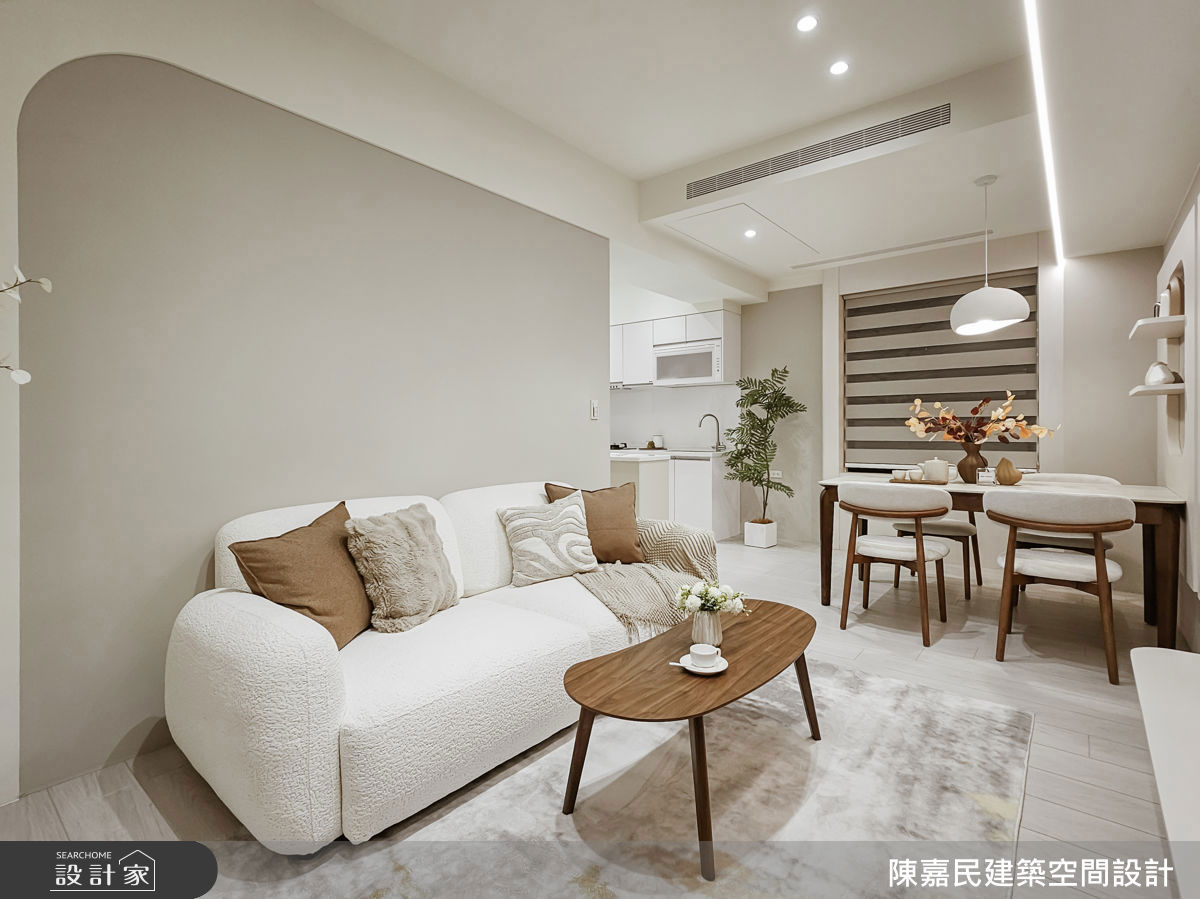 小坪數擴容魔法!18 坪簡約風小宅規劃兩房兩廳,靠系統板材電視牆讓客廳尺度大翻倍