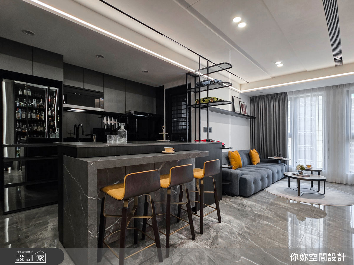 是家也是時髦小酒館!15 坪精緻套房客變術:訂製烈酒展示櫃 × 賽車收藏吧台,品味生活不必向坪數妥協