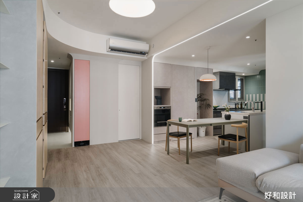 7坪小坪數空間規劃,弧形天花+隱藏收納、放大空間感的北歐美學