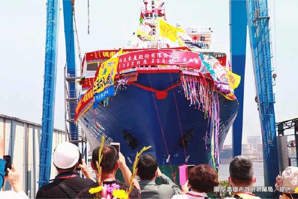 【高雄市訊】高雄市市長陳其邁日前受邀至旗津出席日友水產公司1700噸「日友568號」漁船新船進水典禮,參加擲瓶與灑接麻糬活動,祝福船隻出入平安、滿載而歸。陳其邁也強調對漁港建設的重視,表示中央挹注50億經費,高市府也將力拚在兩年內完成前鎮漁港的現代化改造。