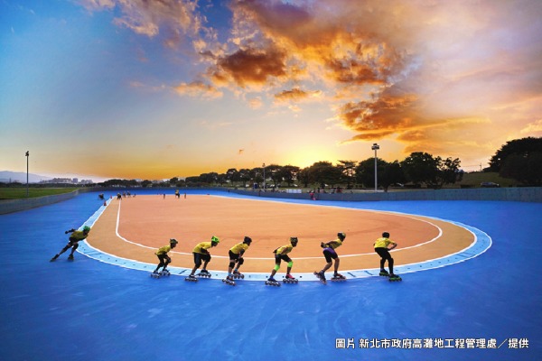 【新北市訊】位於新莊區河濱公園的比賽級競速直排輪場,為符合最新國競賽直排輪場地規範的超高曲率彎道場地。月前啟用之後,吸引許多好手前來術。新北市政府高灘地工程管理處提醒玩家練習時,需遵守標誌標線指示與場地使用規則,注意場內其他人使用狀況,保障彼此安全。