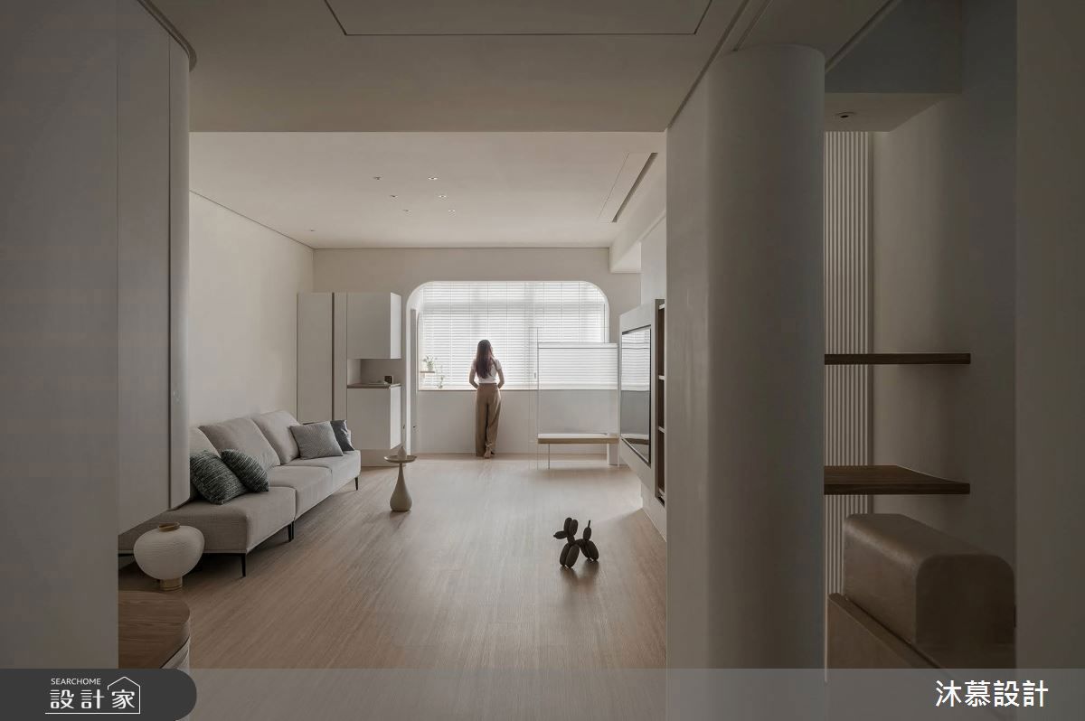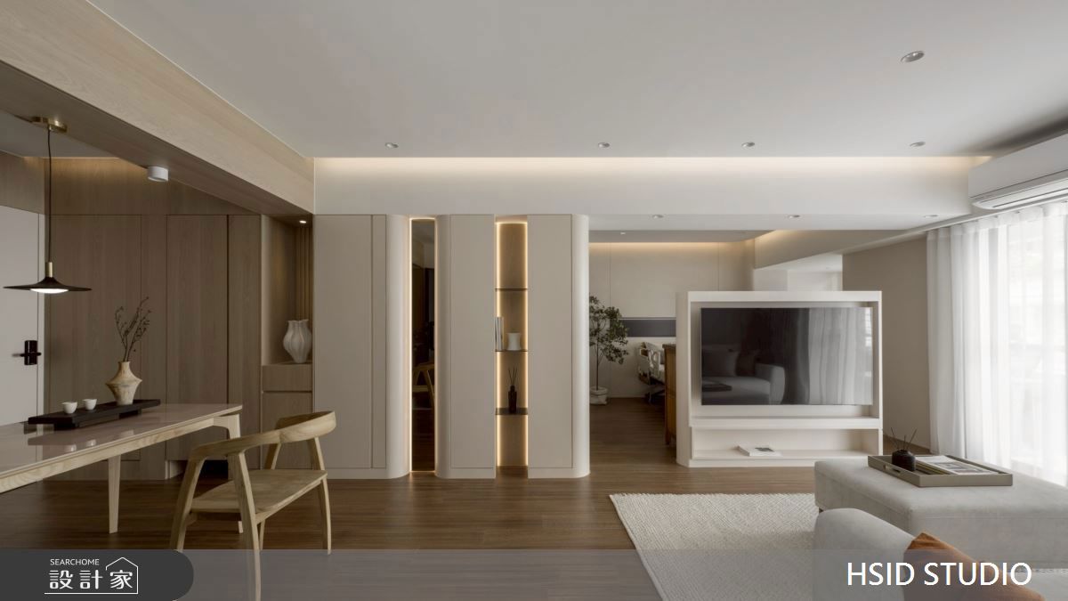35坪現代低奢飯店風中古屋,弧形天花化樑柱問題實現質感四口之家