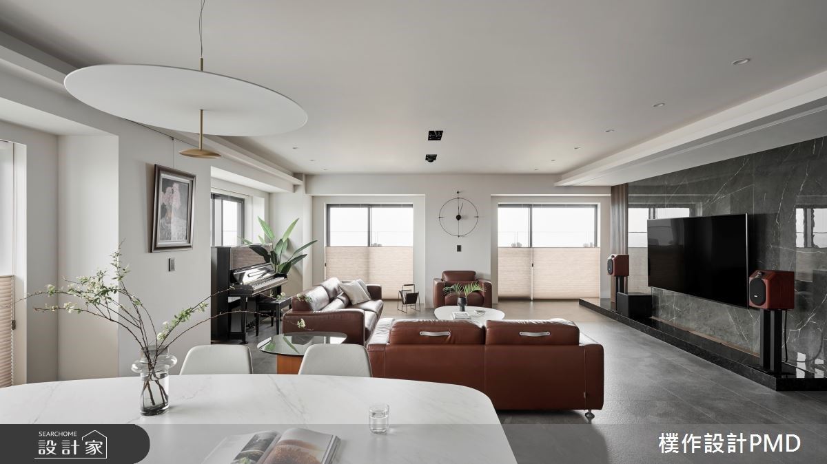 用光影雕塑空間!竹北 60 坪輕奢風住宅,琥珀奢石主牆搭配 Venicem 吊燈,定義低調不張揚的生活哲學