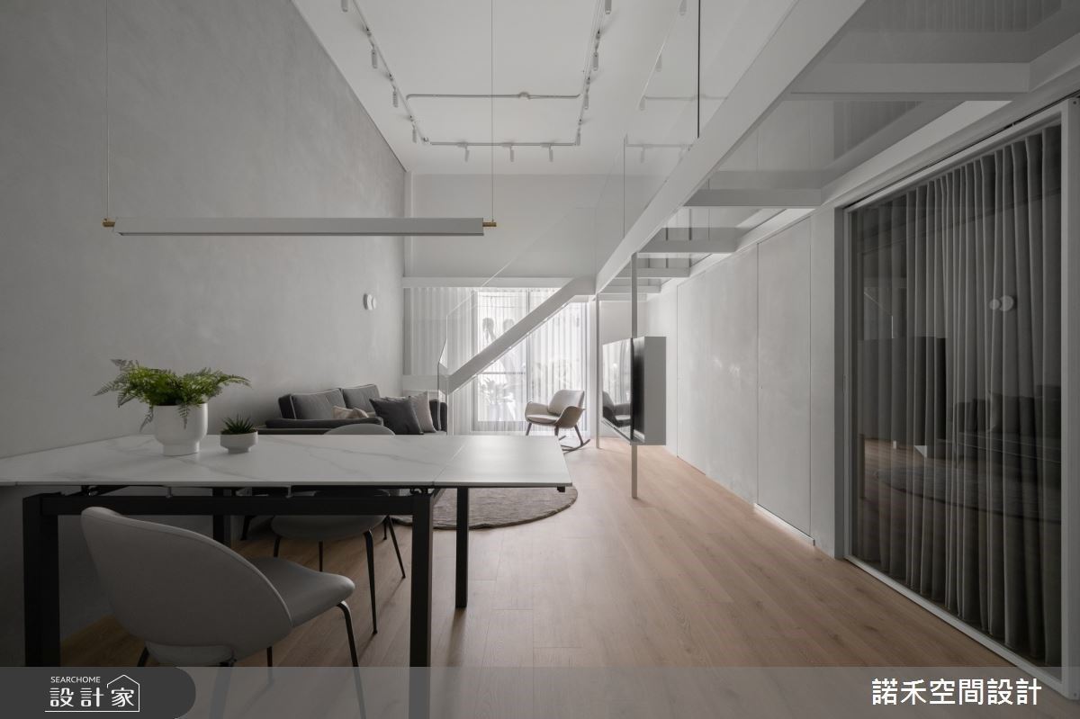 19坪挑高小坪數以簡約風的留白手法,讓透明樓梯與動線營造開放通透的舒適好家