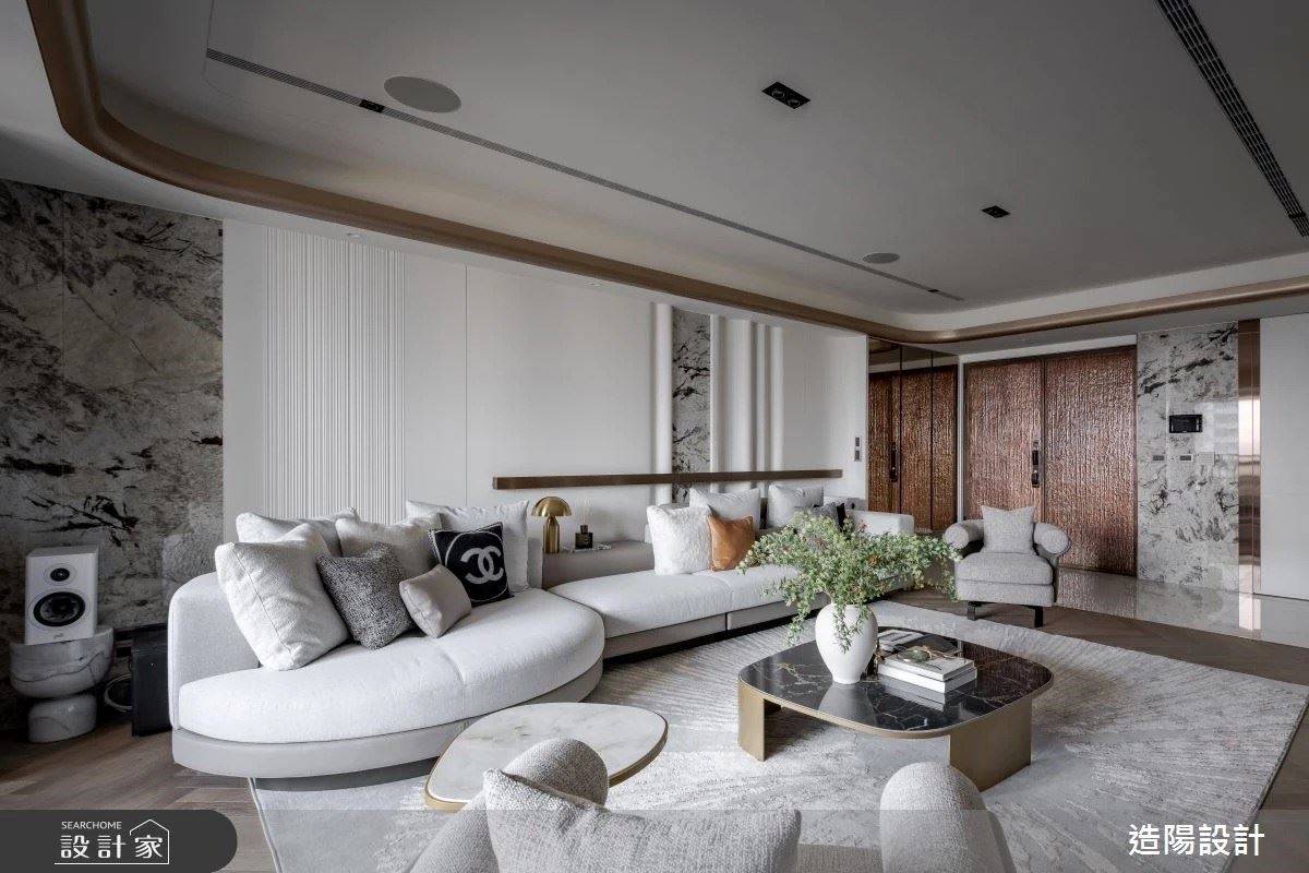 用光影雕塑空間!竹北 60 坪輕奢風住宅,琥珀奢石主牆搭配 Venicem 吊燈,定義低調不張揚的生活哲學