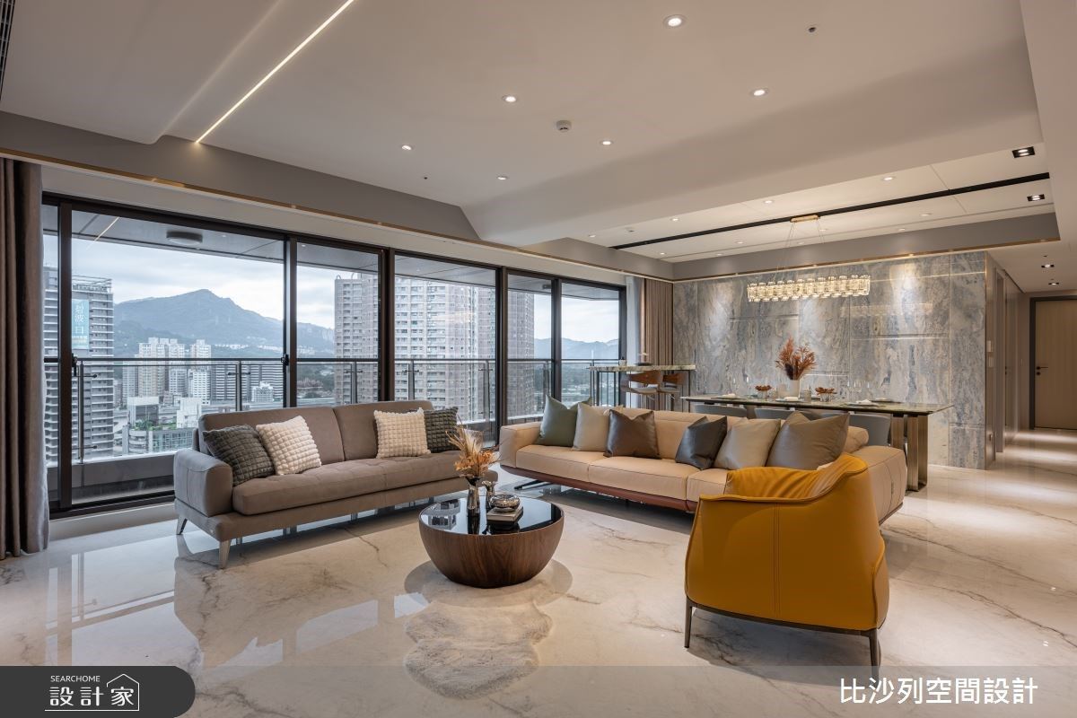 用光影雕塑空間!竹北 60 坪輕奢風住宅,琥珀奢石主牆搭配 Venicem 吊燈,定義低調不張揚的生活哲學
