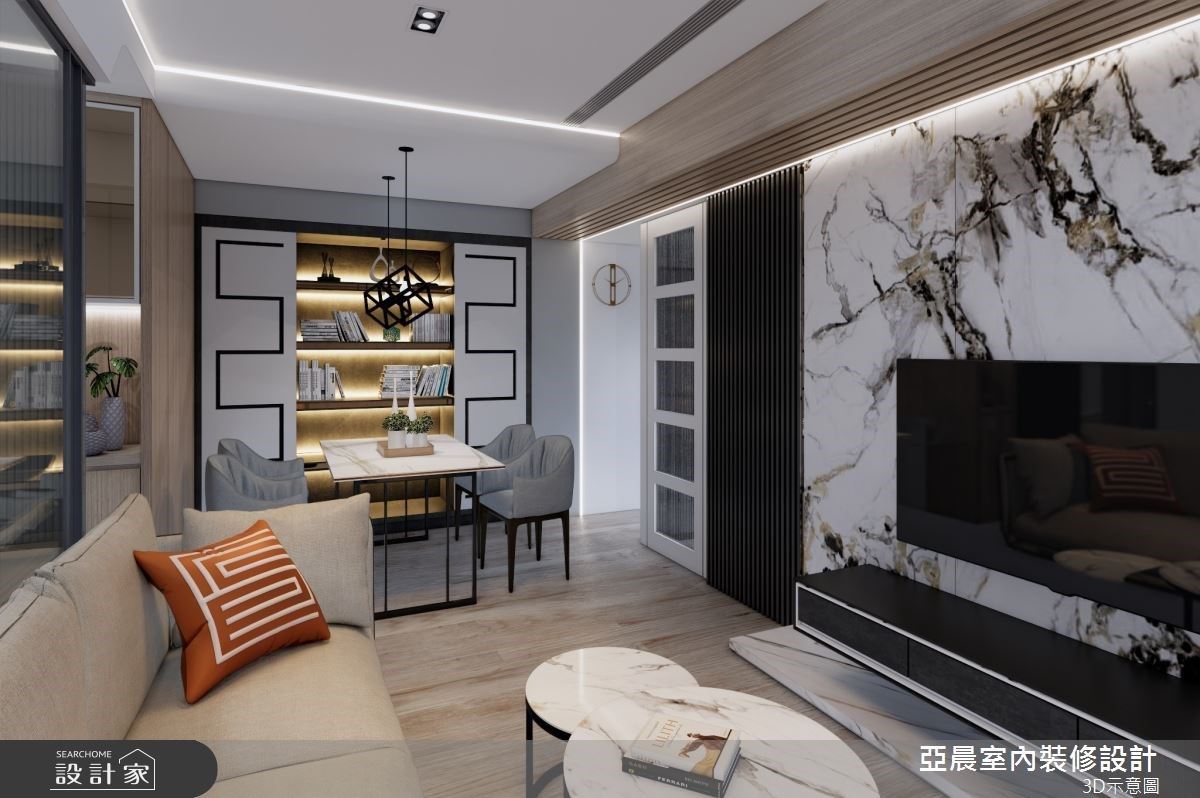 掌握石材與木質調比例!風格展示櫃與通透隔間,創造溫馨雅致的現代風尚宅
