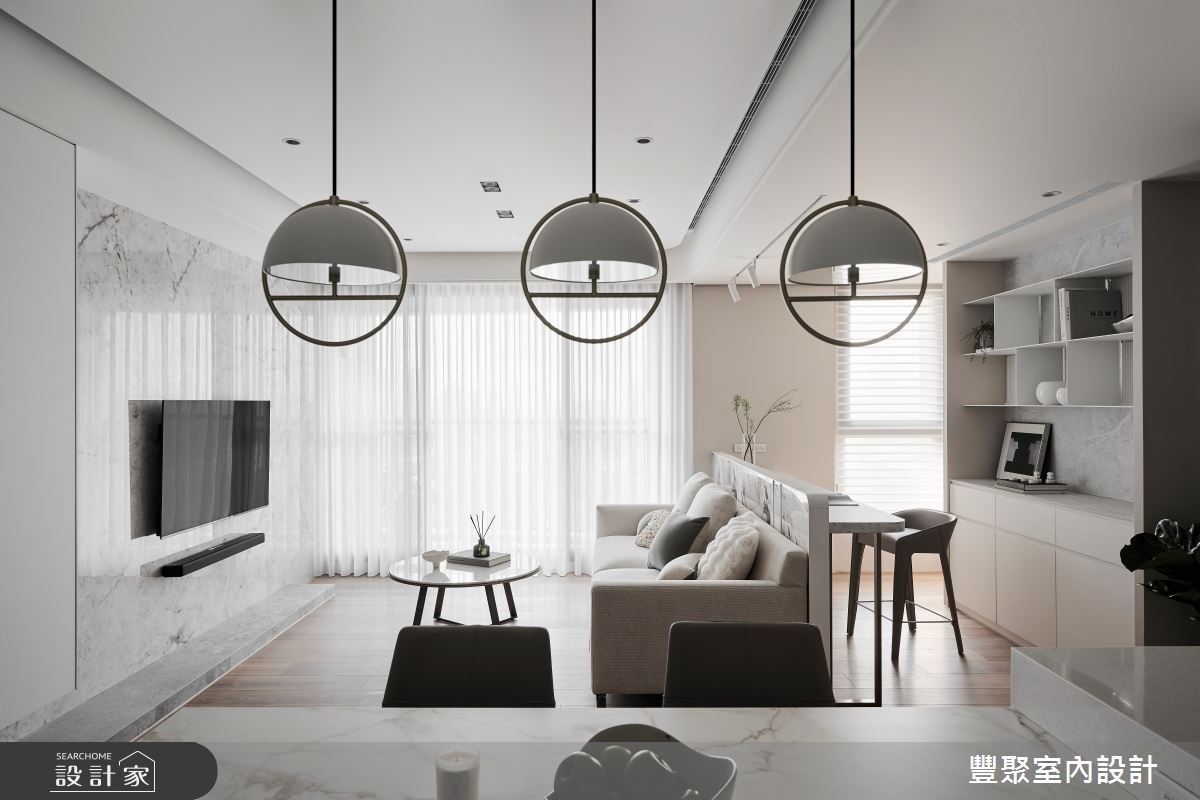 用光影雕塑空間!竹北 60 坪輕奢風住宅,琥珀奢石主牆搭配 Venicem 吊燈,定義低調不張揚的生活哲學