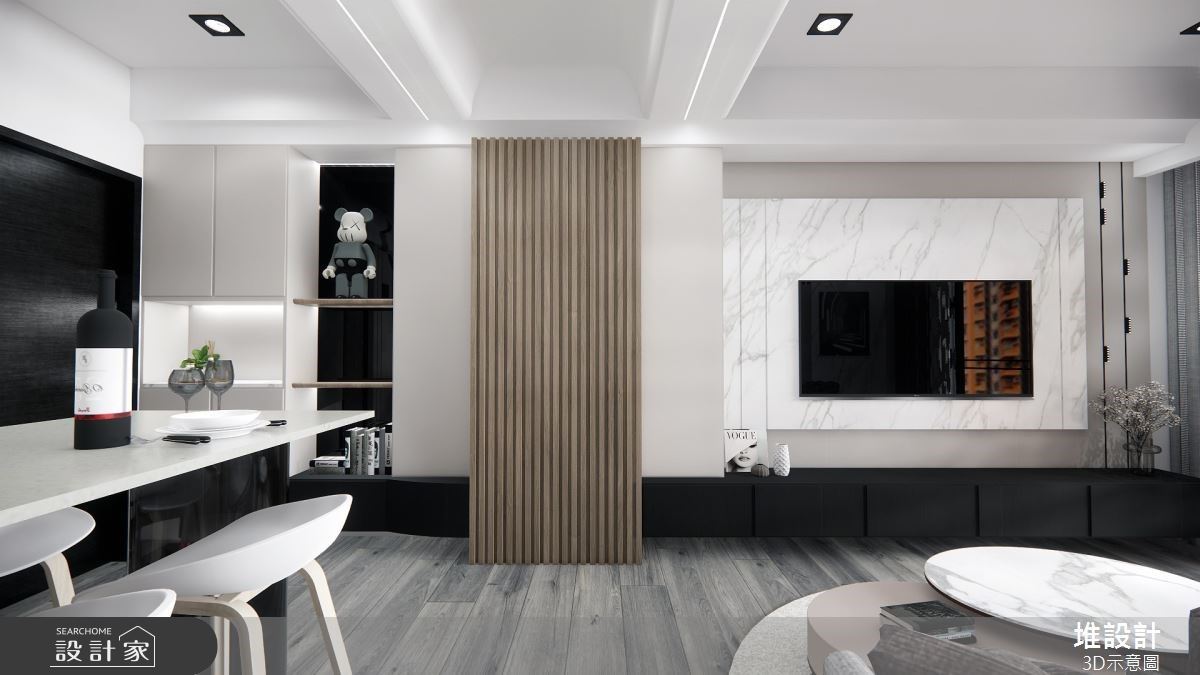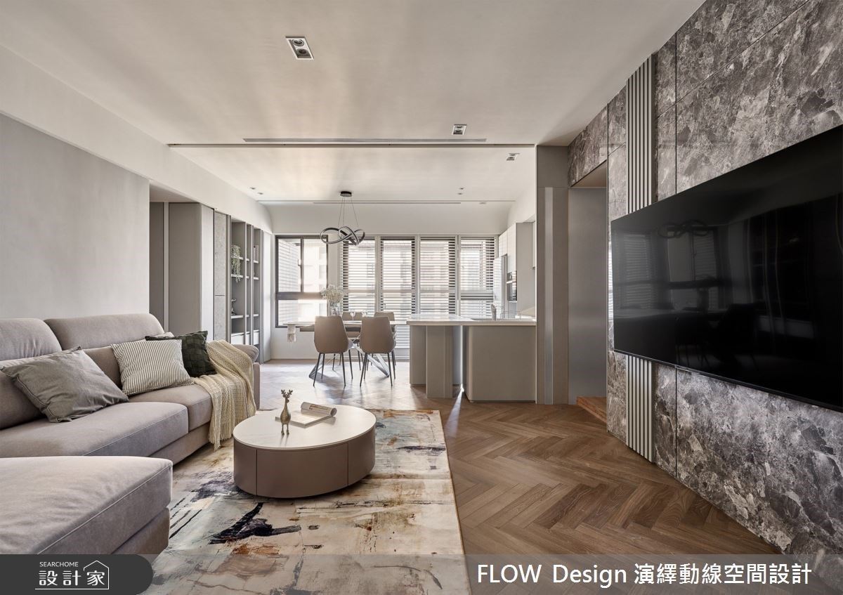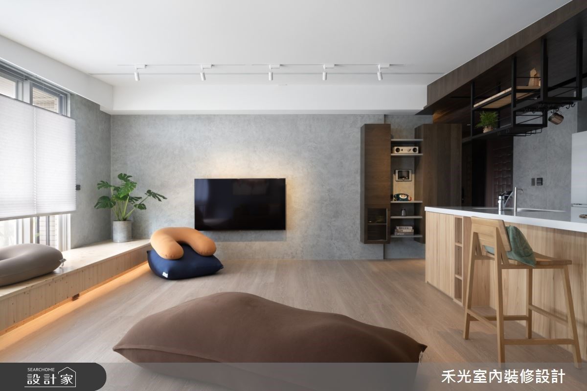 灰、白與木質奠定沉靜氛圍,透過開放式設計與彈性隔間打開舒服聚會新生活