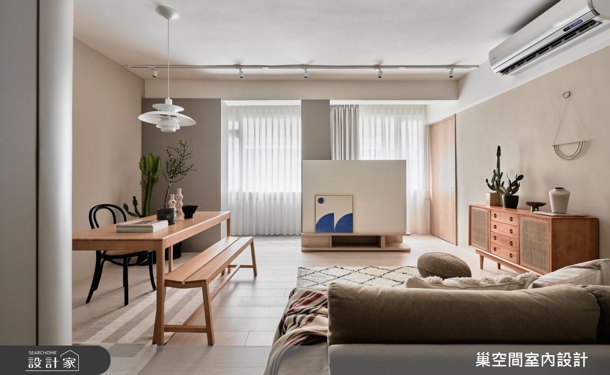 新竹32坪Japandi寧靜宅!暖調木紋、藤編、特殊塗料延展溫馨宜居的生活質感