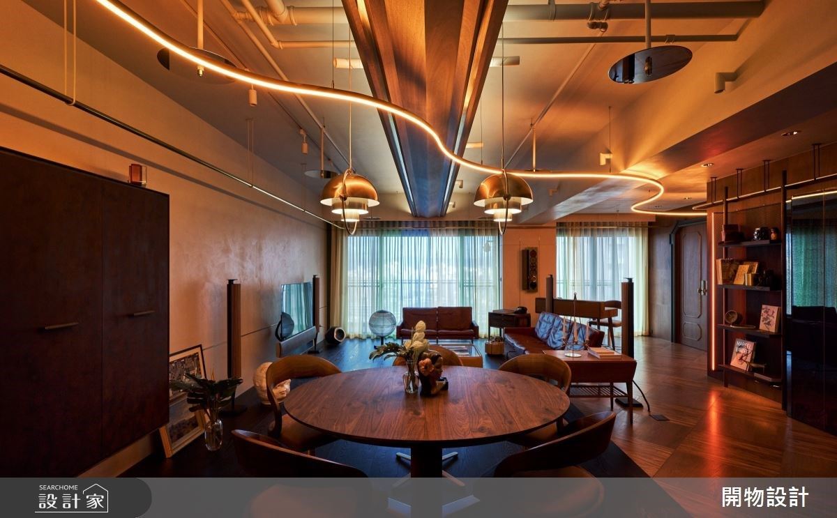 天花鏡面挑高延伸視覺尺度,30坪混搭宅以金屬與特殊漆營造質感層次