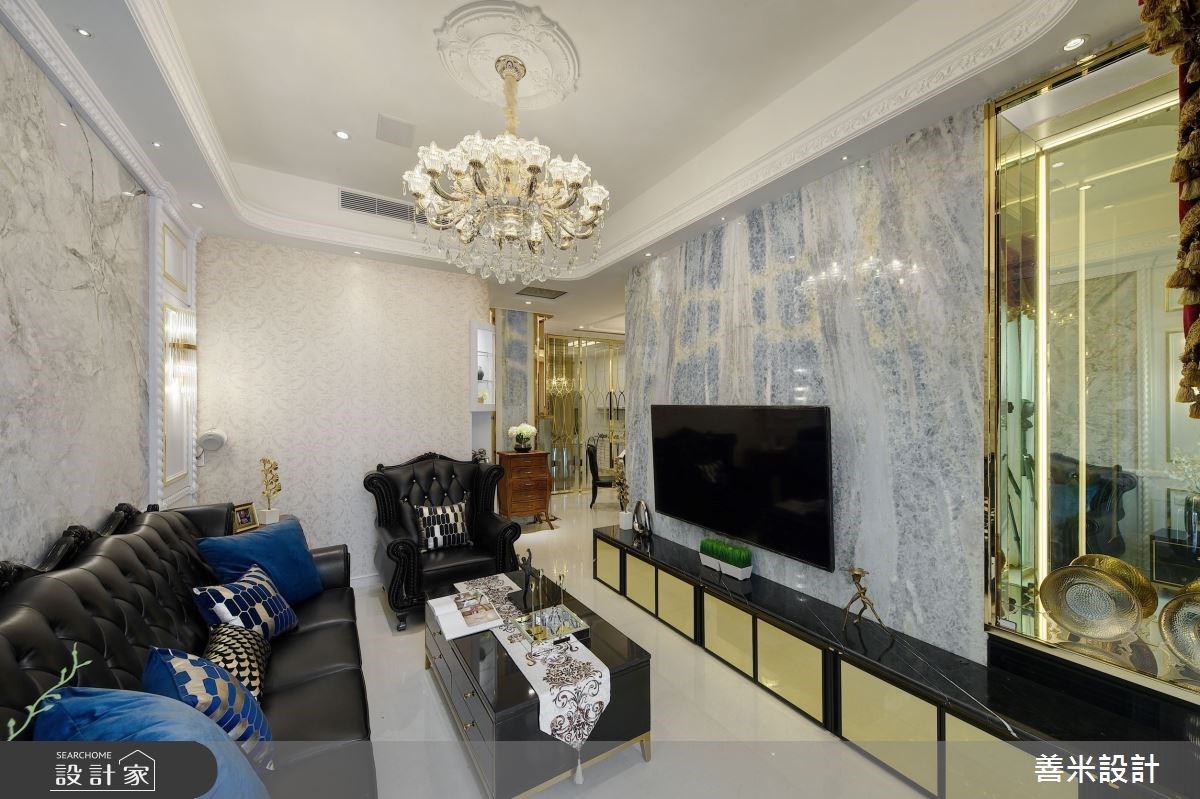 天花鏡面挑高延伸視覺尺度,30坪混搭宅以金屬與特殊漆營造質感層次