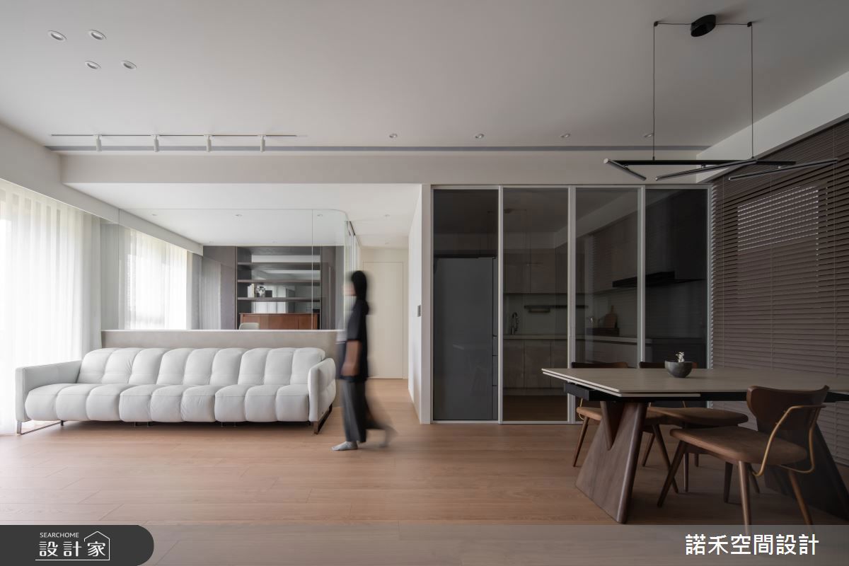 現代輕奢風住宅設計,雙面沙發演繹開放客廳與起居空間讓家人互動成亮點