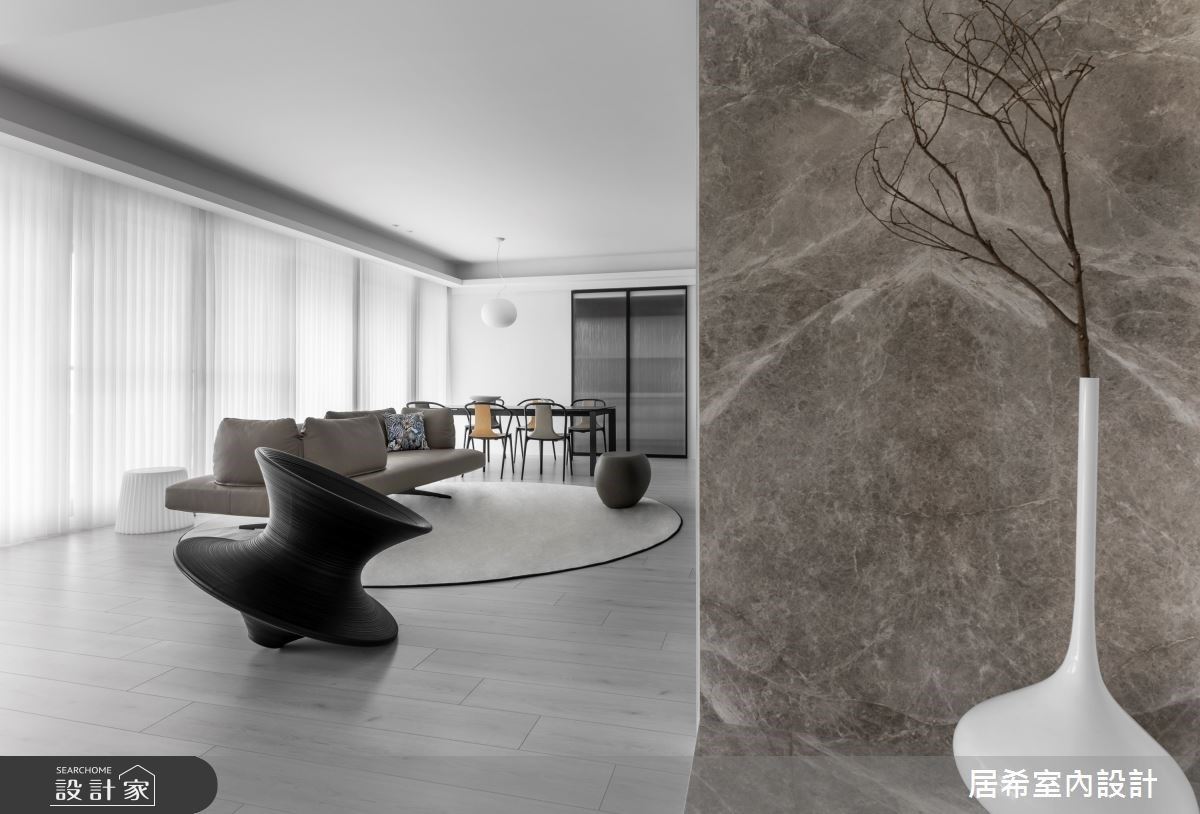 以白為純美理想,串聯玄關、客廳、餐廳引入優美窗景與精緻現代風
