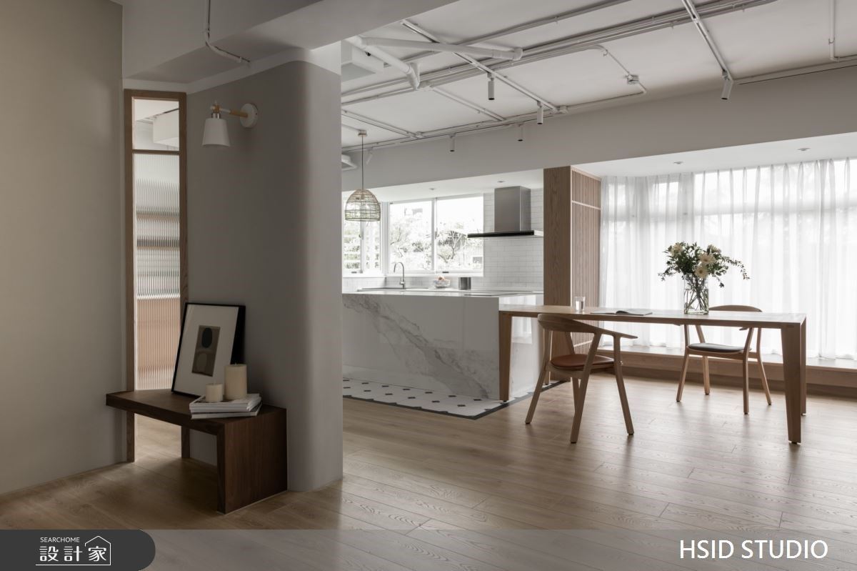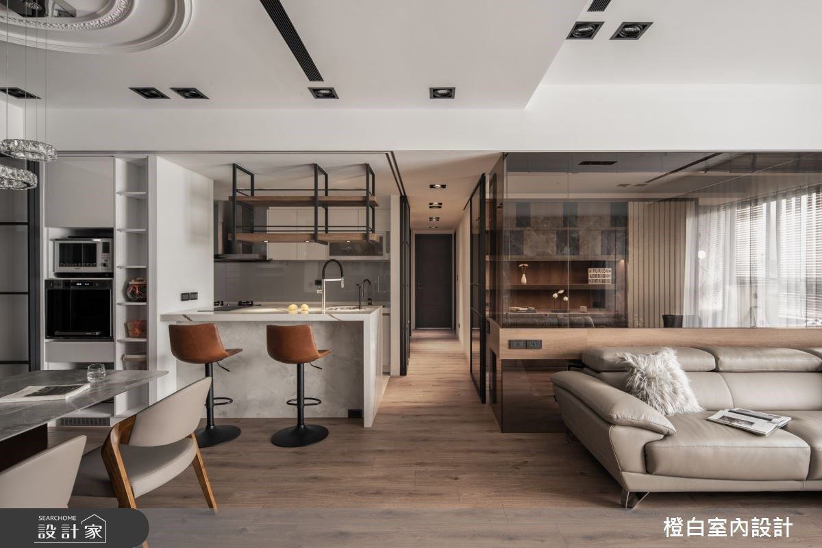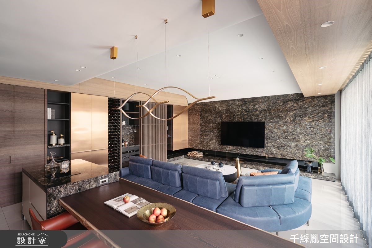 以石材演繹30坪現代風小豪宅的人文暖度,中島與餐桌結合放大空間氣勢