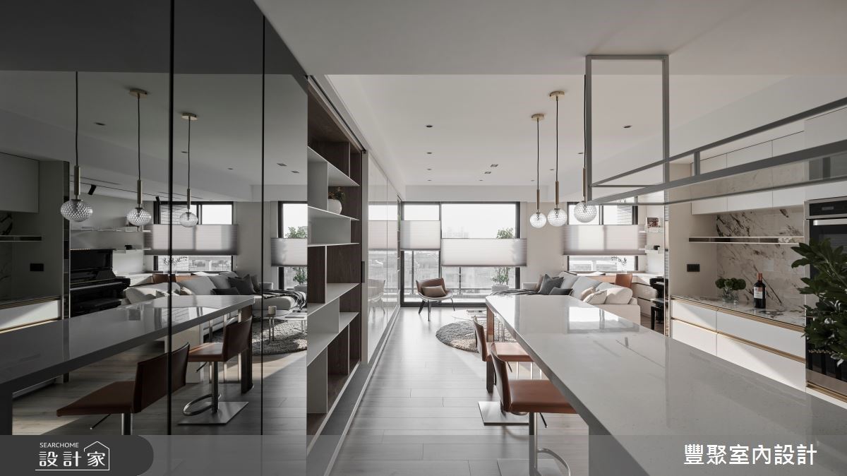 天花鏡面挑高延伸視覺尺度,30坪混搭宅以金屬與特殊漆營造質感層次