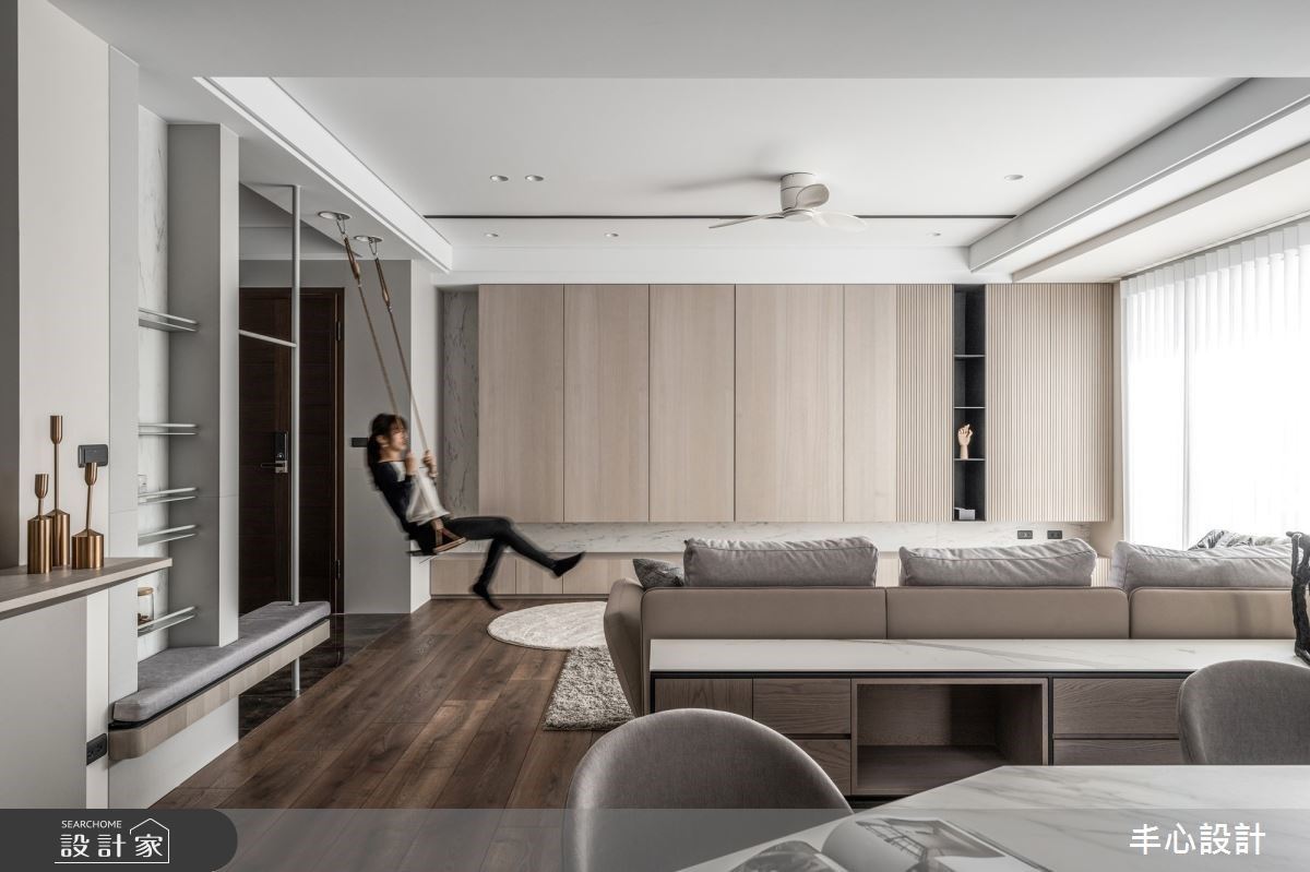 玄關盪鞦韆、隱藏電視,不出門也能在簡約風宅玩耍