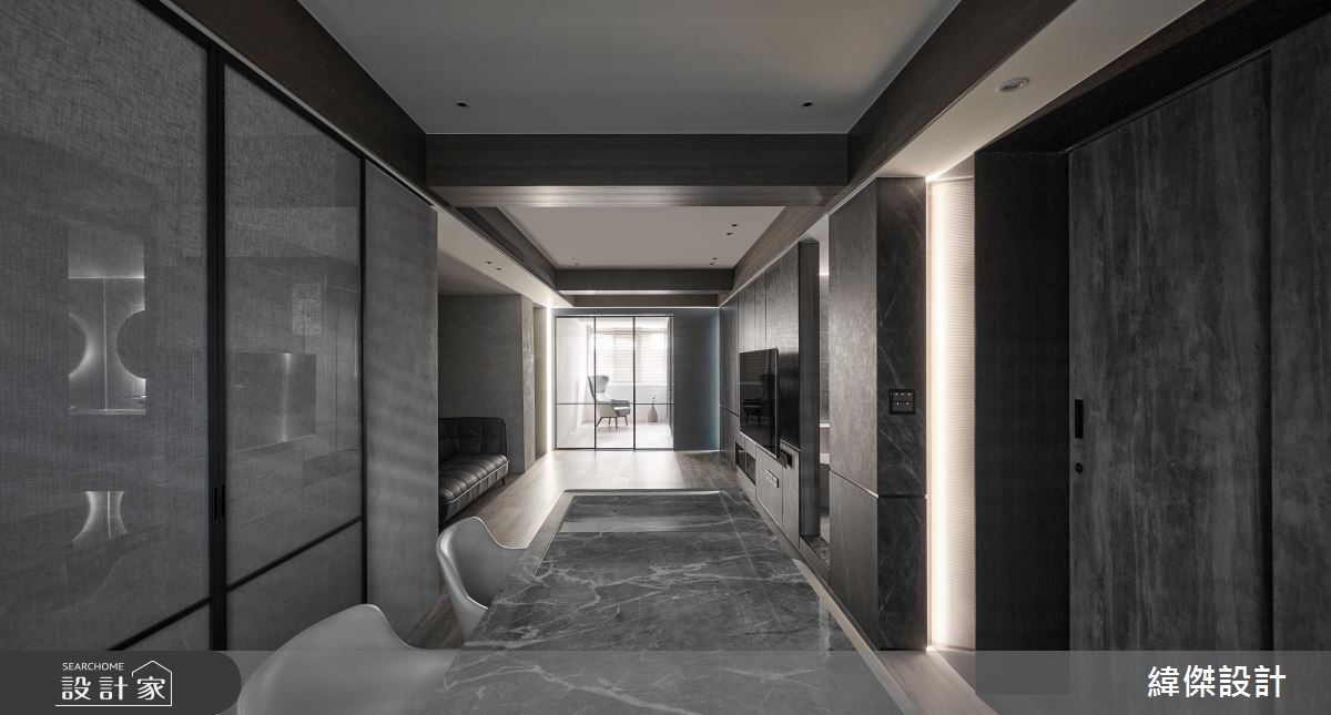 天花鏡面挑高延伸視覺尺度,30坪混搭宅以金屬與特殊漆營造質感層次
